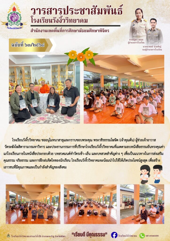 กราบขอบพระคุณพระวชิรธรรมโฆษิต (เจ้าคุณต้น) ผู้ช่วยเจ้าอาวาส วัดระฆังโฆสิตารามวรมหาวิหาร ที่เมตตามอบหนังสือธรรมอันทรงคุณค่าแก่โรงเรียนวังงิ้ววิทยาคมBy โรงเรียนวังงิ้ววิทยาคม / 03/12/2025