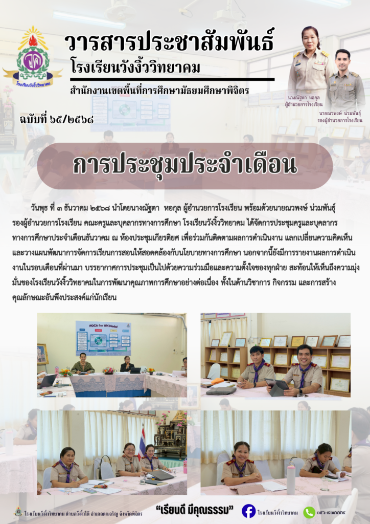 การประชุมครูและบุคลากรทางการศึกษาประจำเดือนธันวาคม 2568