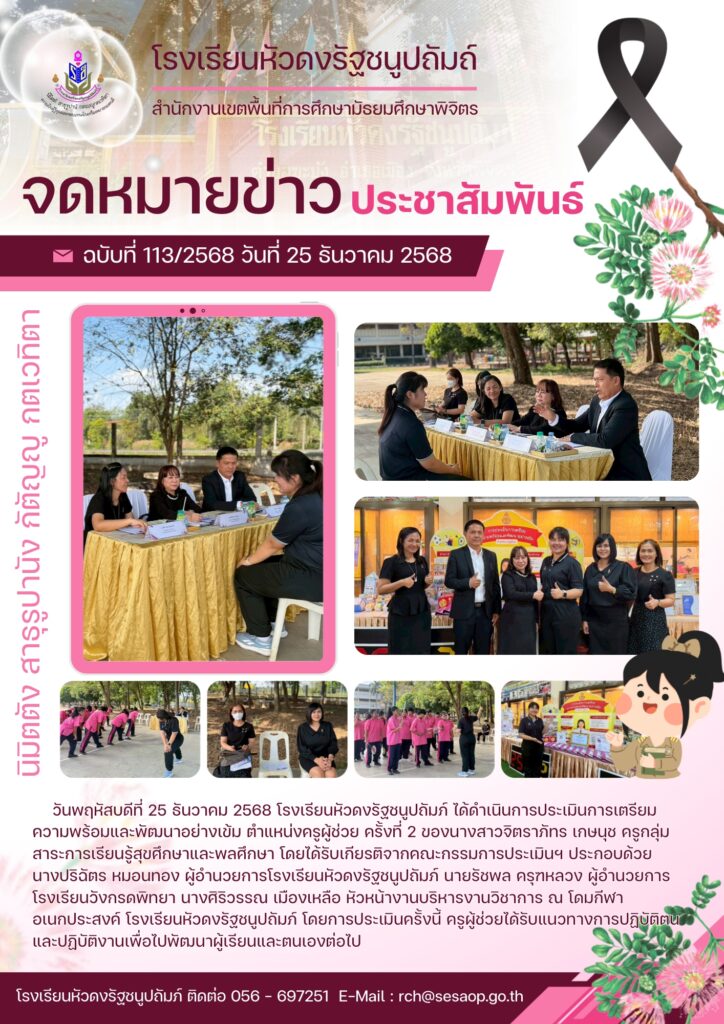 การประเมินครูผู้ช่วยครั้งที่ 2 ของคุณครูจิตราภัทร เกษนุชBy งานประชาสัมพันธ์ โรงเรียนหัวดงรัฐชนูปถัมภ์ / 25/12/2025