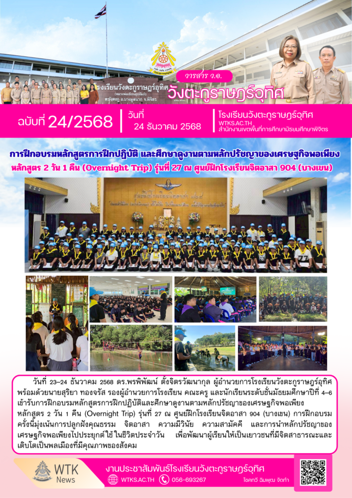 การฝึกอบรมหลักสูตรการฝึกปฏิบัติและศึกษาดูงานตามหลักปรัชญาของเศรษฐกิจพอเพียง หลักสูตร 2 วัน 1 คืน (Overnight Trip) รุ่นที่ 27By โรงเรียนวังตะกูราษฎร์อุทิศ / 25/12/2025