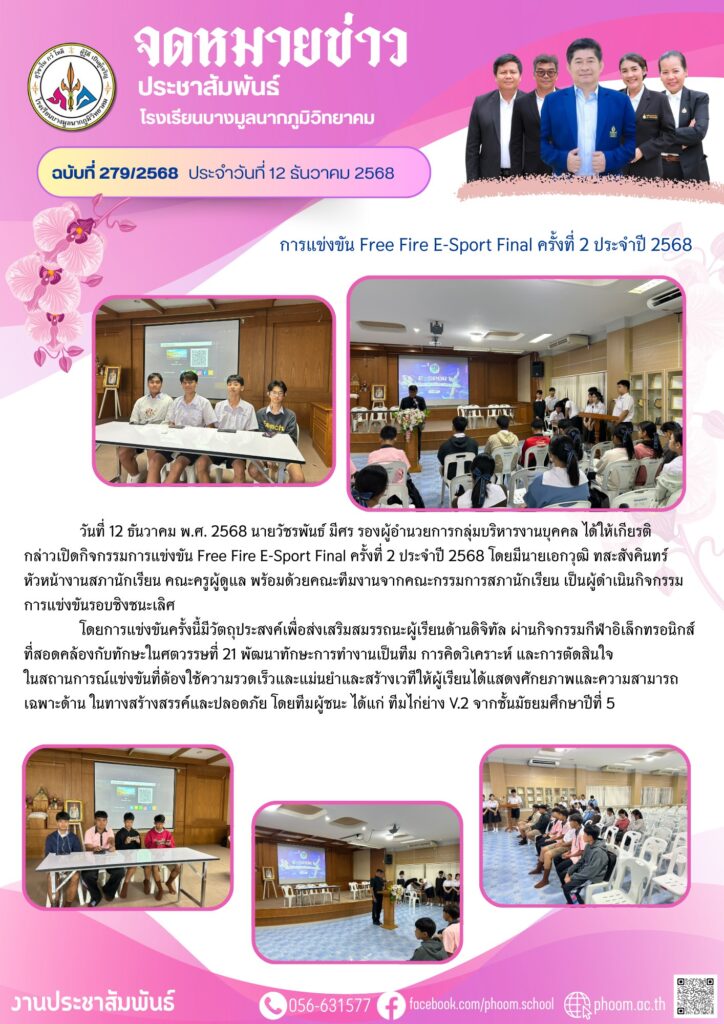 กิจกรรมการแข่งขัน Free Fire E-Sport Final ครั้งที่ 2 ประจำปี 2568By โรงเรียนบางมูลนากภูมิวิทยาคม / 12/12/2025