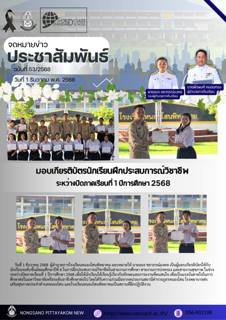ข่าวประชาสัมพันธ์โรงเรียนหนองโสนพิทยาคม