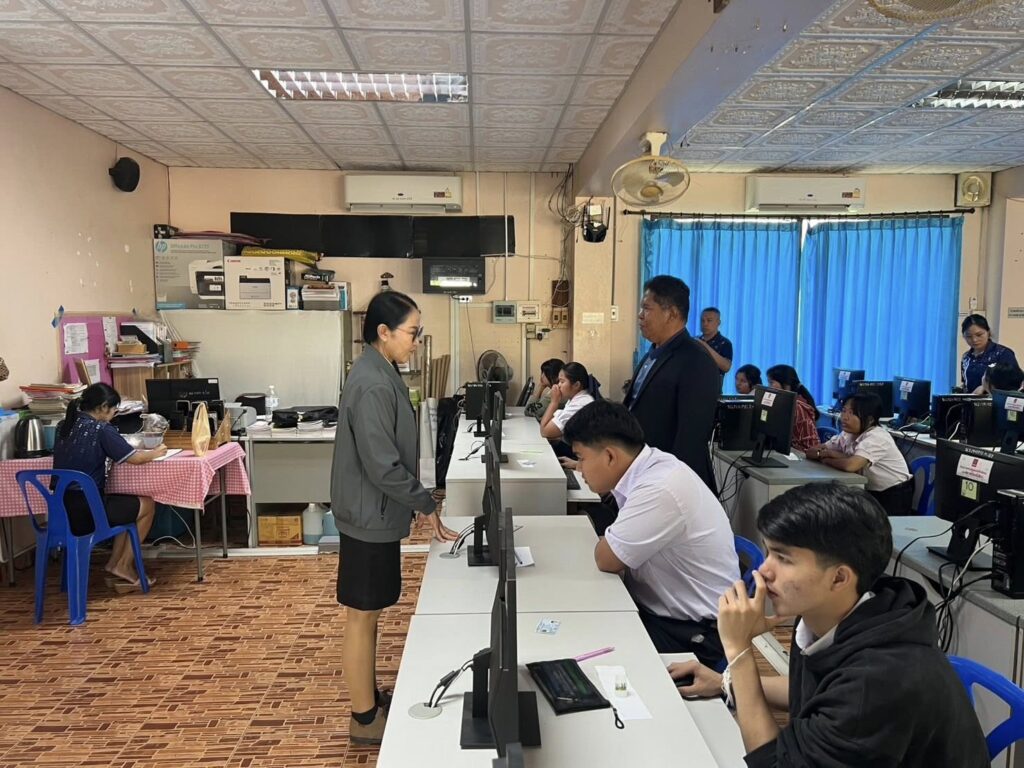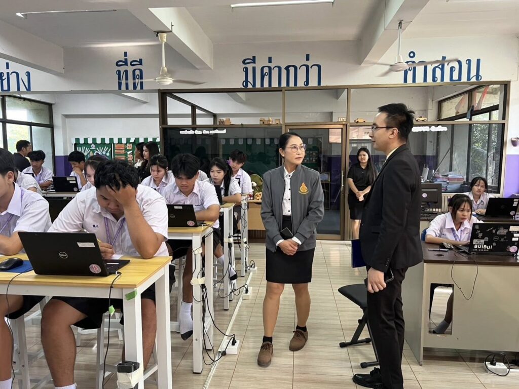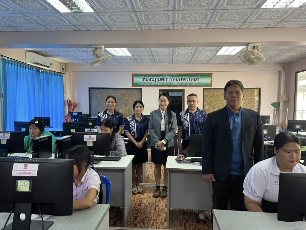 วันที่ 1 มีนาคม 2569 ดร.สิงห์เพชร สุทธิ ผู้อำนวยการสำนักงานเขตพื้นที่การศึกษามัธยมศึกษาพิจิตร มอบหมายให้ นางสาวนิรัติศัย สิทธิรักษ์ รองผู้อำนวยการสำนักงานเขตพื้นที่การศึกษามัธยมศึกษาพิจิตร ลงพื้นที่ตรวจเยี่ยมสนามสอบโรงเรียนโพธิ์ไทรงามวิทยาคม โรงเรียนห้วยยาวพิทยาคม โรงเรียนท่าเสาพิทยาคม และโรงเรียนพิบูลธรรมเวทวิทยา ในการดำเนินการทดสอบทางการศึกษาระดับชาติขั้นพื้นฐาน (Ordinary National Education Test : O-NET) ของนักเรียนชั้นมัธยมศึกษาปีที่ 6 ด้วยระบบดิจิทัล (Digital Testing) ปีการศึกษา 2568 เพื่อกำกับ ติดตาม ให้คำแนะนำในการดำเนินการฯ ให้เป็นไปตามแนวปฏิบัติที่ สทศ.กำหนด รวมทั้งให้กำลังใจคณะกรรมการที่ปฏิบัติหน้าที่ฯ และนักเรียนที่เข้าทดสอบฯ