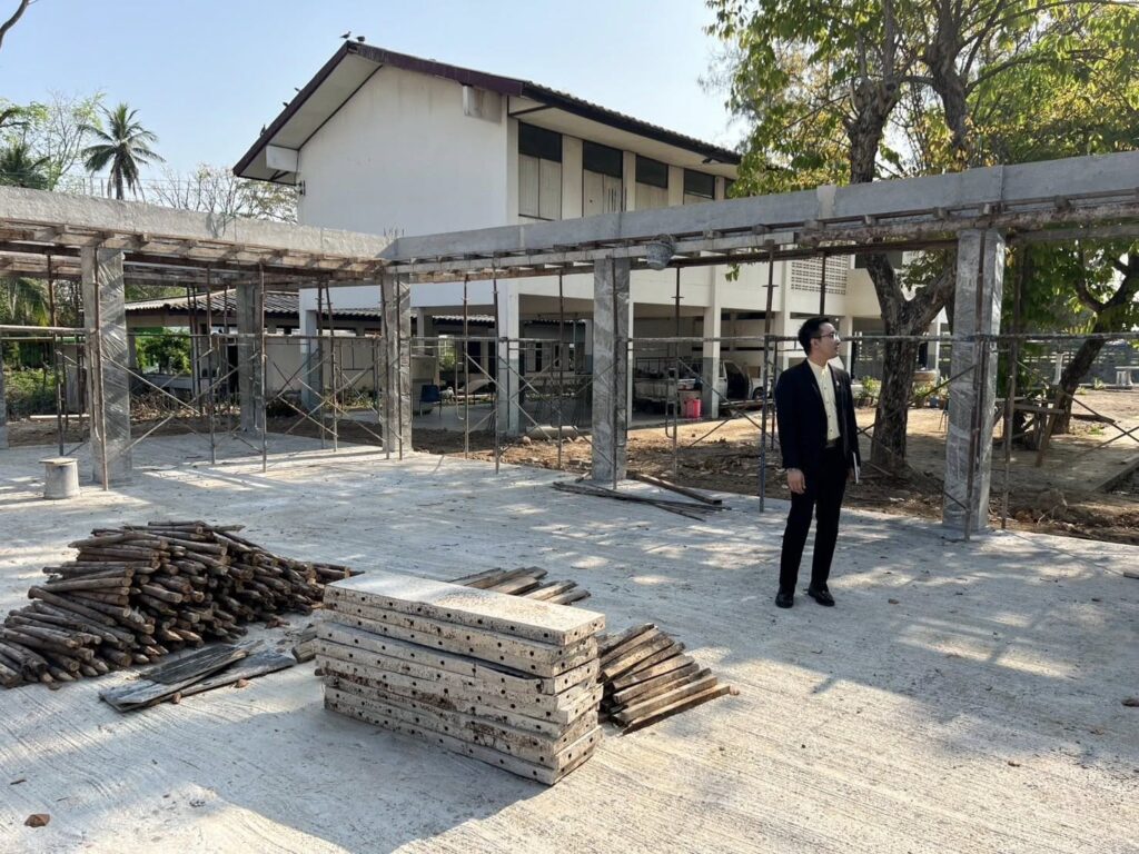 วันที่ 1 มีนาคม 2569 ดร.สิงห์เพชร สุทธิ ผู้อำนวยการสำนักงานเขตพื้นที่การศึกษามัธยมศึกษาพิจิตร มอบหมายให้ นางสาวนิรัติศัย สิทธิรักษ์ รองผู้อำนวยการสำนักงานเขตพื้นที่การศึกษามัธยมศึกษาพิจิตร ลงพื้นที่ตรวจสอบและติดตามความก้าวหน้าการก่อสร้างอาคารโรงอาหารหลังใหม่ของโรงเรียนโพธิ์ไทรงามวิทยาคม อำเภอบึงนาราง จังหวัดพิจิตรการลงพื้นที่ครั้งนี้ เพื่อติดตามความคืบหน้าของโครงการให้เป็นไปตามแผนงาน งบประมาณ และมาตรฐานความปลอดภัย พร้อมทั้งให้ข้อเสนอแนะในการดำเนินงาน เพื่อให้การก่อสร้างแล้วเสร็จตามกำหนดเวลา และเกิดประโยชน์สูงสุดต่อสถานศึกษาทั้งนี้ การก่อสร้างโรงอาหารหลังใหม่มีเป้าหมายเพื่อรองรับจำนวนนักเรียนที่เพิ่มขึ้น และยกระดับสภาพแวดล้อมด้านโภชนาการและสุขอนามัยที่เหมาะสม อันจะส่งผลต่อคุณภาพชีวิตและคุณภาพการจัดการเรียนรู้ของผู้เรียนในระยะยาว