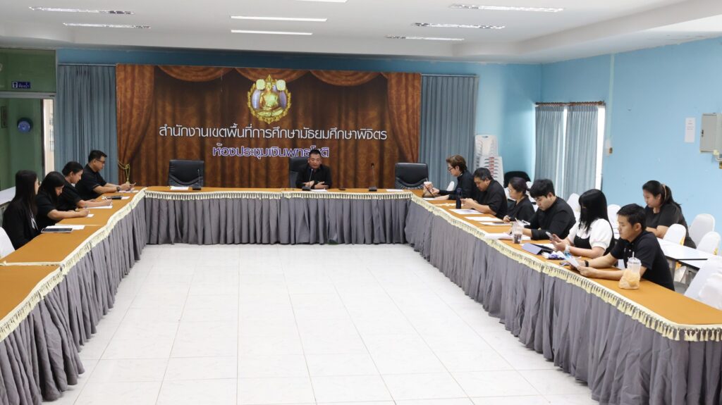 วันที่ 11 พฤศจิกายน 2568 ดร.สิงห์เพชร สุทธิ ผู้อำนวยการสำนักงานเขตพื้นที่การศึกษามัธยมศึกษาพิจิตร มอบหมายให้ นายวณัฐพงศ์ ทองคำ รองผู้อำนวยการสำนักงานเขตพื้นที่การศึกษามัธยมศึกษาพิจิตร ประธานการประชุมการจัดการแข่งขันศิลปหัตกรรมนักเรียน ครั้งที่ 1 ปีการศึกษา 2568 ระดับเขตพื้นที่ “หัตถสิริศิลป์ล้ำค่า เทิดไท้องค์ราชชนนี” เพื่อส่งเสริมอัจฉริยภาพและทักษะการเรียนรู้สู่การแข่งขันในศตวรรษที่ 21 ประจำปีการศึกษา 2568 โดยมีบุคลากรกลุ่มนิเทศติดตามและประเมนผลการจัดการศึกษา และกลุ่มส่งเสริมการจัดการศึกษาเข้าร่วมการประชุม” ณ ห้องประชุมเงินพุทธโชติ สำนักงานเขตพื้นที่การศึกษามัธยมศึกษาพิจิตร อำเภอเมือง จังหวัดพิจิตร