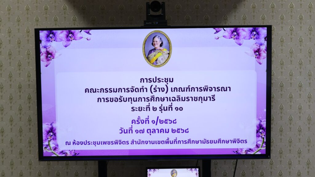 วันที่ 17 ตุลาคม 2568 ดร.สิงห์เพชร สุทธิ ผู้อำนวยการสำนักงานเขตพื้นที่การศึกษามัธยมศึกษาพิจิตร ประธานการประชุมคณะกรรมการจัดทำ (ร่าง) เกณฑ์การพิจารณาการขอรับทุนการศึกษาเฉลิมราชกุมารี ระยะที่ 2 รุ่นที่ 10 ครั้งที่ 1/2568 โดยมี ว่าที่พันตรีสุวิศิษฏ์ กันทา รอง ผอ.สพป.พิจิตร เขต 1 นายประจักษ์ ทองแจ่ม รอง ผอ.สพป.พิจิตร เขต 2 ผู้อำนวยการกลุ่มและบุคลากรที่เกี่ยวข้อง เข้าร่วมการประชุม เพื่อร่วมกันพิจารณาแนวทางการจัดทำหลักเกณฑ์ในการคัดเลือกนักเรียนที่มีคุณสมบัติเหมาะสม เข้ารับทุนการศึกษาเฉลิมราชกุมารี ซึ่งเป็นทุนพระราชทานอันทรงคุณค่า ที่มุ่งส่งเสริมโอกาสทางการศึกษาแก่เยาวชนในพื้นที่ชนบทให้สามารถเรียนต่อและพัฒนาศักยภาพตนเองอย่างต่อเนื่อง ณ ห้องประชุมเพชรพิจิตร ชั้น 2 สพม.พิจิตร อ.เมือง จ.พิจิตร