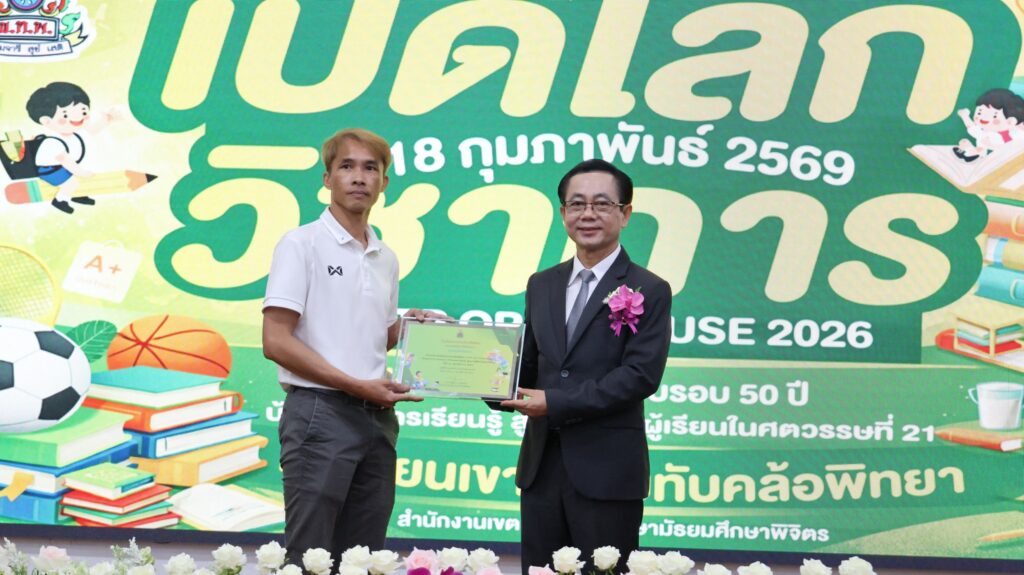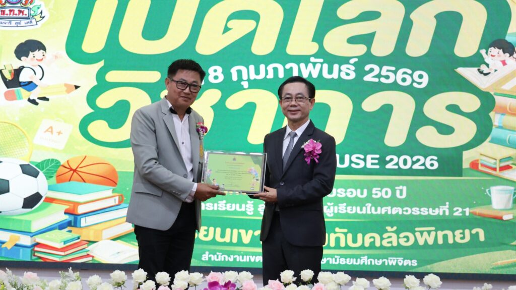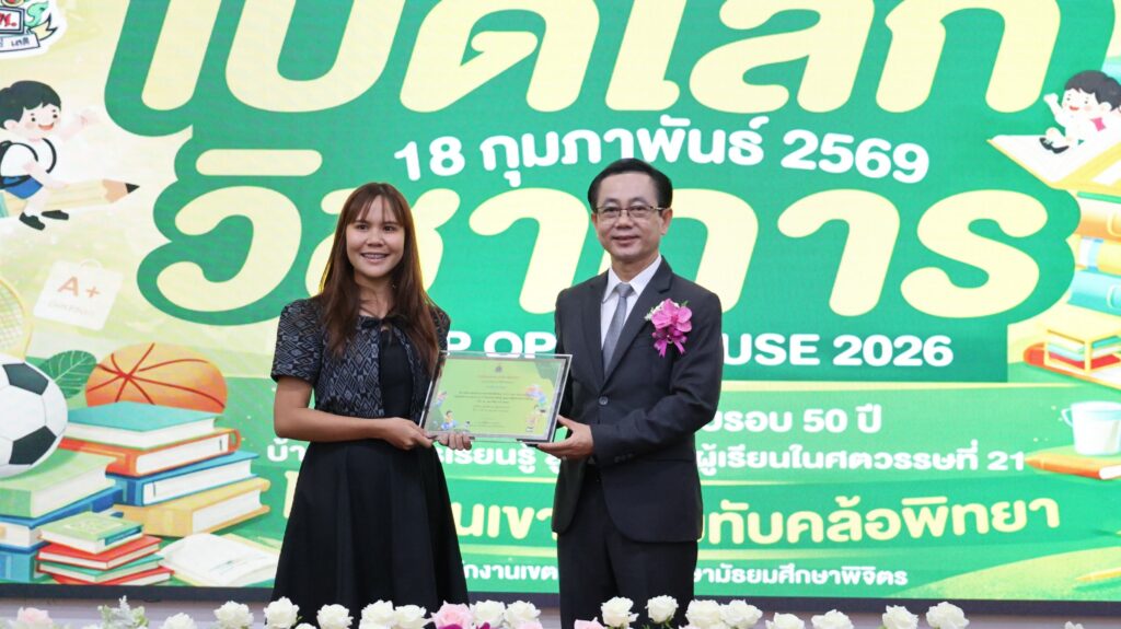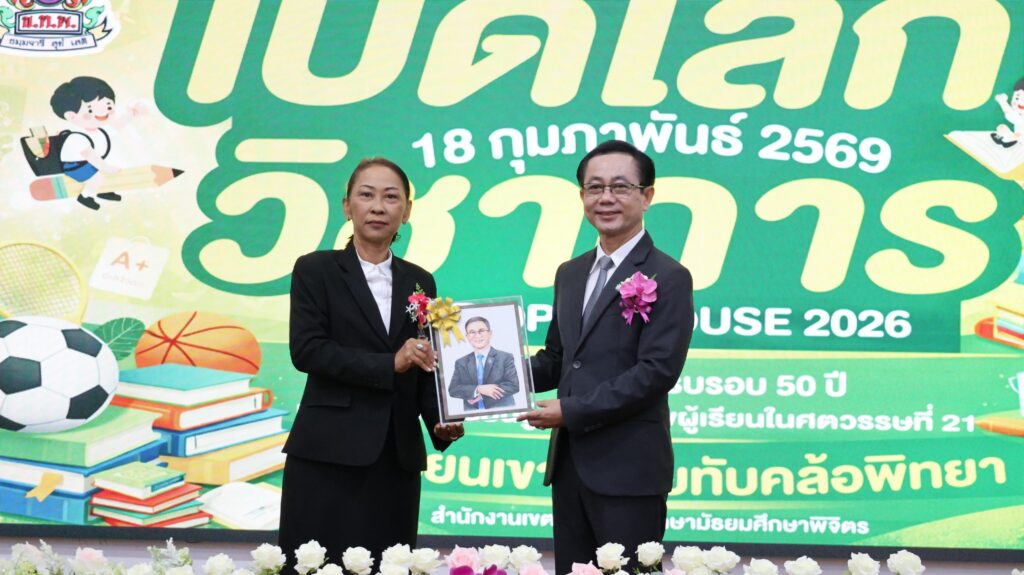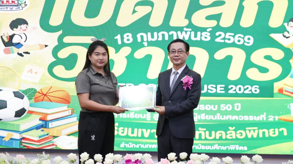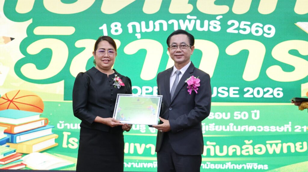 วันที่ 18 กุมภาพันธ์ 2569 ดร.สิงห์เพชร สุทธิ ผู้อำนวยการสำนักงานเขตพื้นที่การศึกษามัธยมศึกษาพิจิตร ประธานในพิธีเปิดกิจกรรมเปิดบ้าน “KHTP Open House 2026 : เปิดโลกวิชาการ ครบรอบ 50 ปี บ้านแห่งการเรียนรู้ สู่คุณภาพผู้เรียนในศตวรรษที่ 21” โดยมีผู้บริหารสถานศึกษา คณะครู นักเรียน และแขกผู้มีเกียรติ เข้าร่วมพิธีเปิดฯณ หอประชุมพุทธรักษา โรงเรียนเขาทรายทับคล้อพิทยา อำเภอทับคล้อ จังหวัดพิจิตรดร.จิรัฐิติกาล บุญอินทร์ ผู้อำนวยการโรงเรียนเขาทรายทับคล้อพิทยา กล่าวรายงาน การจัดกิจกรรมครั้งนี้มีวัตถุประสงค์เพื่อเผยแพร่ผลงานของโรงเรียน ครู และนักเรียน รวมถึงเปิดโอกาสให้โรงเรียนในเครือข่ายได้เข้าร่วมกิจกรรมเชิงสร้างสรรค์ร่วมกัน ส่งเสริมการเรียนรู้ที่เน้นผู้เรียนเป็นสำคัญ และพัฒนาทักษะที่จำเป็นในศตวรรษที่ 21ภายในงานมีการจัดนิทรรศการผลงานจากกลุ่มสาระการเรียนรู้ กิจกรรมแสดงความสามารถของนักเรียน และกิจกรรมสร้างสรรค์หลากหลายรูปแบบ สร้างบรรยากาศแห่งการเรียนรู้อย่างมีความสุข และสะท้อนความก้าวหน้าทางการศึกษาของโรงเรียนตลอดระยะเวลา 50 ปี