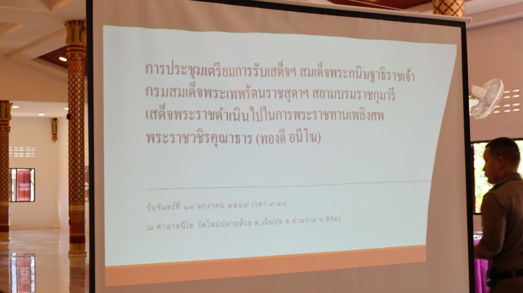 ข่าวสพม.พิจิตร วันที่ 19 มกราคม 2569 – ร่วมการประชุมเตรียมการรับเสด็จฯ สมเด็จพระกนิษฐาธิราชเจ้า กรมสมเด็จพระเทพรัตนราชสุดาฯ สยามบรมราชกุมารี เสด็จพระราชดำเนินไปในการพระราชทานเพลิงศพพระราชิรคุณาธาร (ทองดี อนีโฆ)