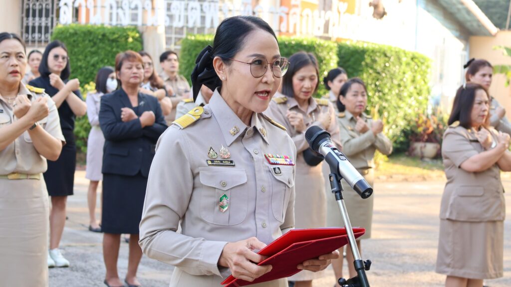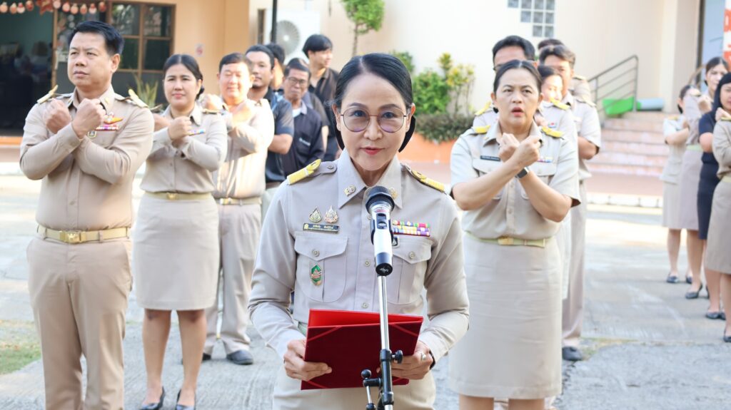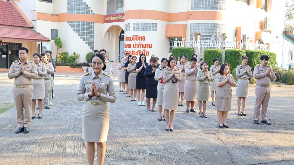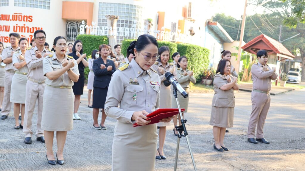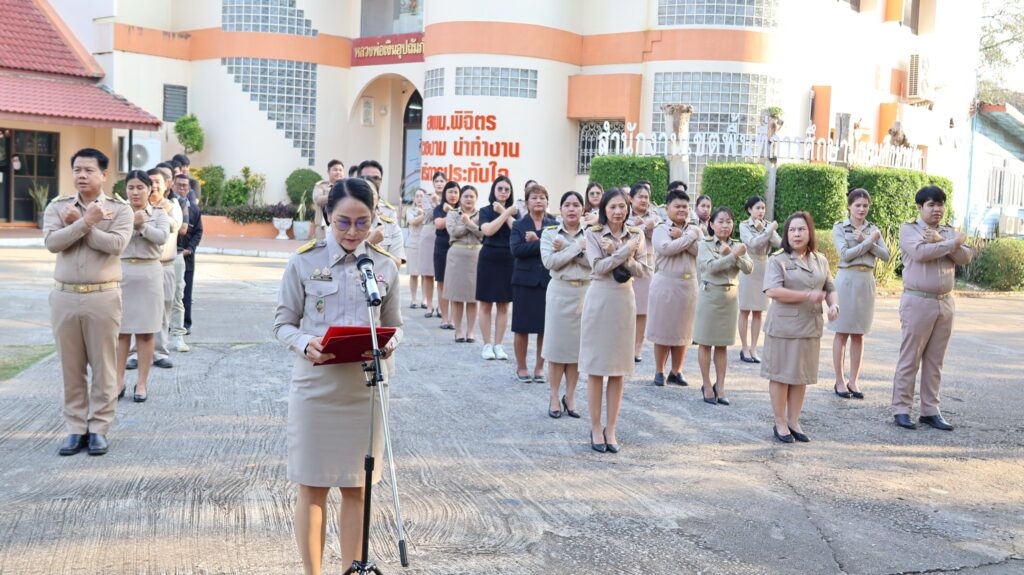 วันที่ 2 กุมภาพันธ์ 2569 ดร.สิงห์เพชร สุทธิ ผู้อำนวยการสำนักงานเขตพื้นที่การศึกษามัธยมศึกษาพิจิตร มอบหมายให้ นางสาวนิรัติศัย สิทธิรักษ์ รองผู้อำนวยการสำนักงานเขตพื้นที่การศึกษามัธยมศึกษาพิจิตร และบุคลากรในสังกัด เข้าแถวเคารพธงชาติ สวดมนต์ไหว้พระ แผ่เมตตา กล่าวคำปฏิญาณเขตสุจริต ซึ่งเป็นกิจกรรมหนึ่งในโครงการเสริมสร้างคุณธรรม จริยธรรม และความโปร่งใส เป็นการสร้างความสามัคคี การร่วมกันทำงานเป็นทีม เพื่อพัฒนาองค์กร ให้มีความเข้มแข็งและมีคุณภาพ ณ สำนักงานเขตพื้นที่การศึกษามัธยมศึกษาพิจิตร อำเภอเมือง จังหวัดพิจิตร