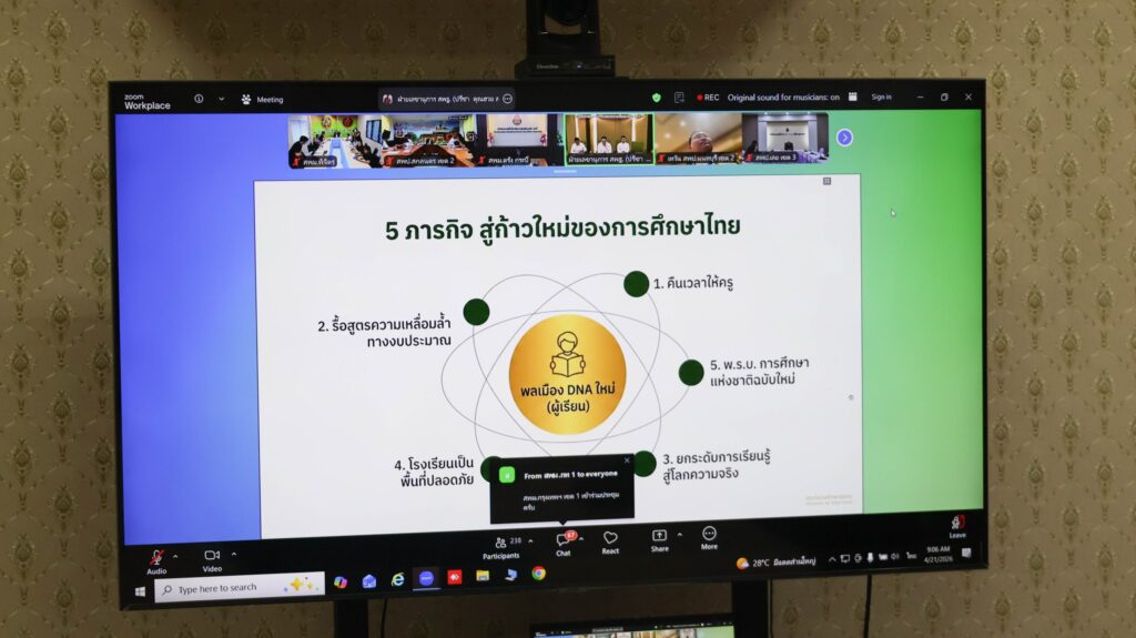 ข่าวสพม.พิจิตร วันที่ 21 เมษายน 2569 – ผอ.สพม.พิจิตร พร้อมด้วยผู้อำนวยการกลุ่ม/หน่วย เข้าร่วมประชุมผู้บริหาร สพฐ.ครั้งที่ 14/2569 ผ่านระบบ Zoom Meeting โดยมี ดร.พิเชษฐ์ โพธิ์ภักดี เลขาธิการคณะกรรมการการศึกษาขั้นพื้นฐาน เป็นประธานมอบนโยบายการศึกษา