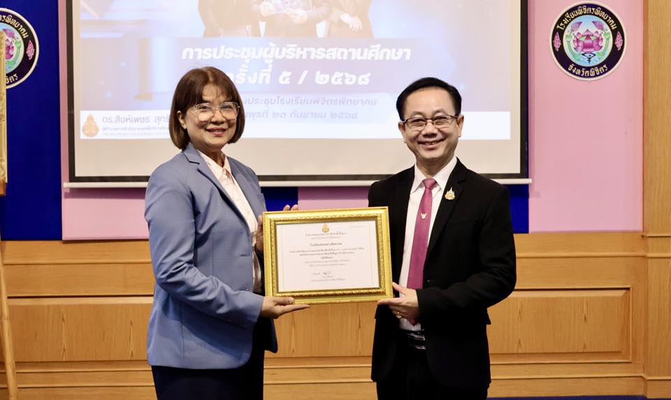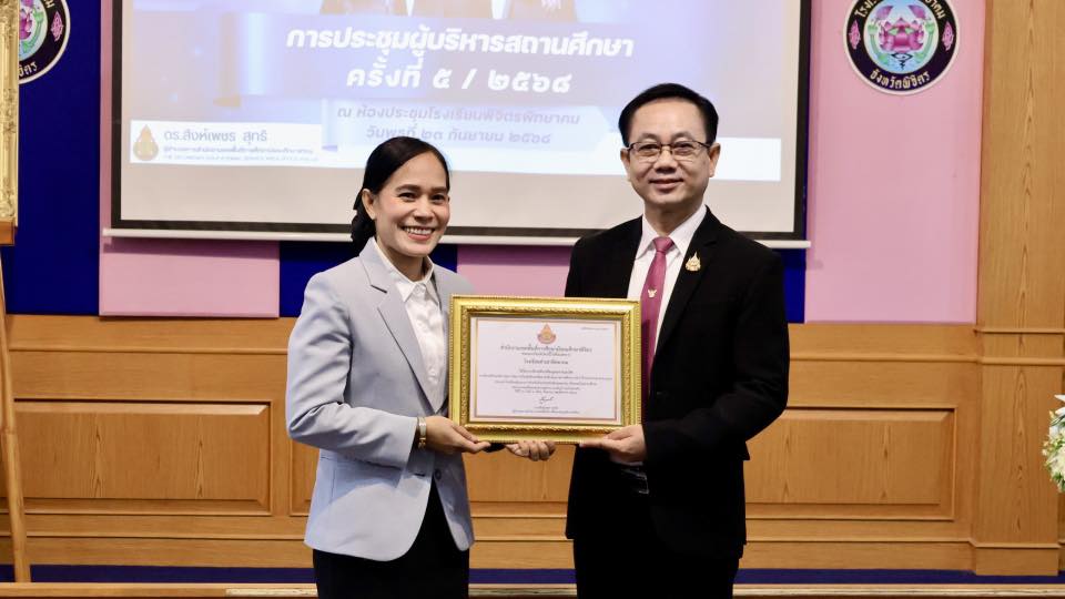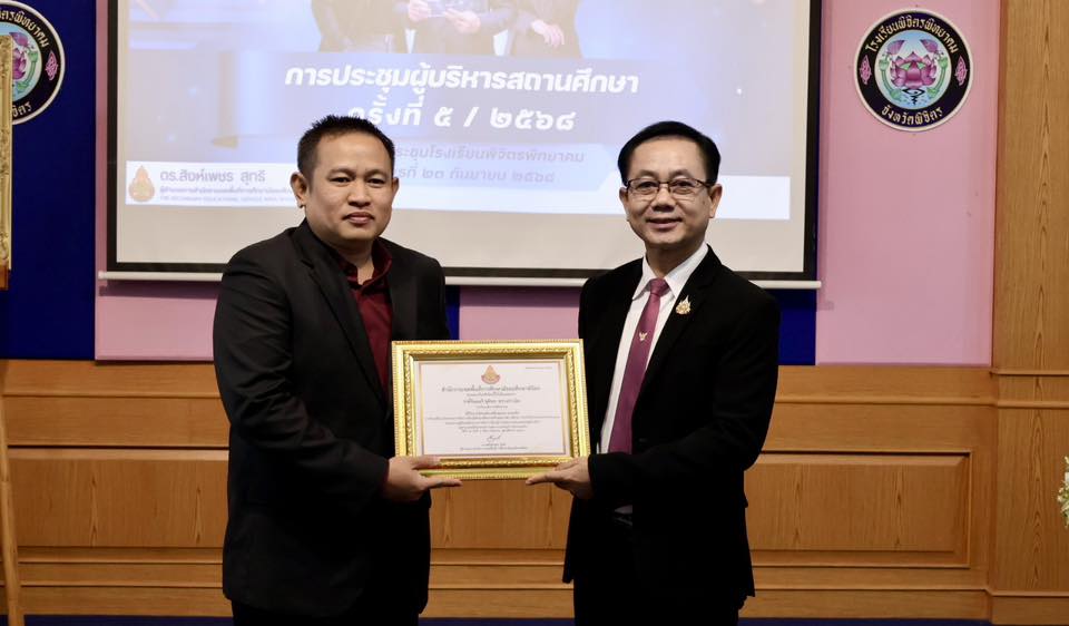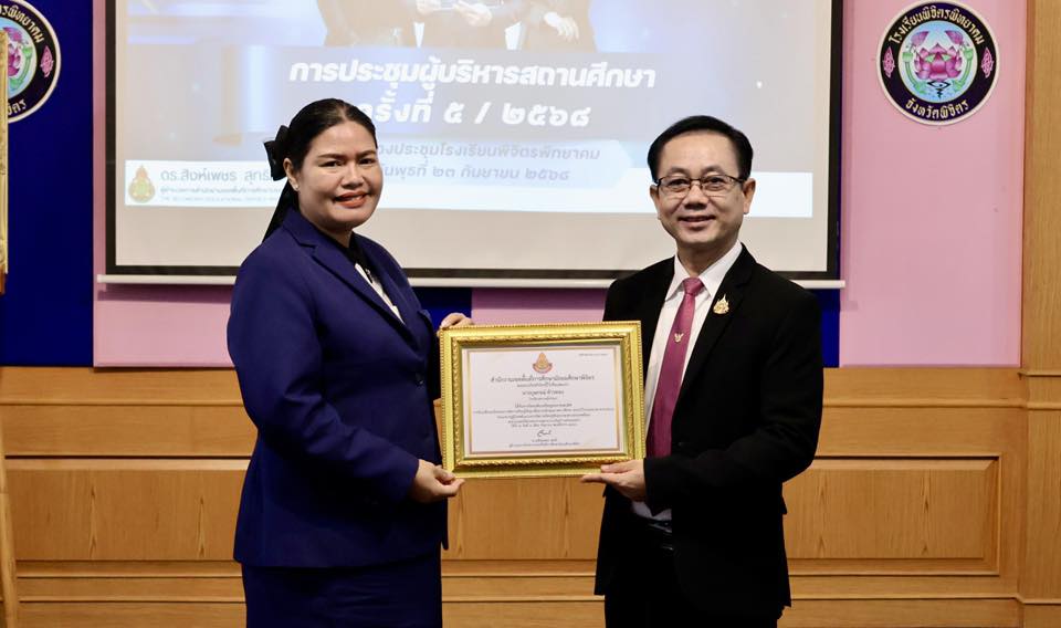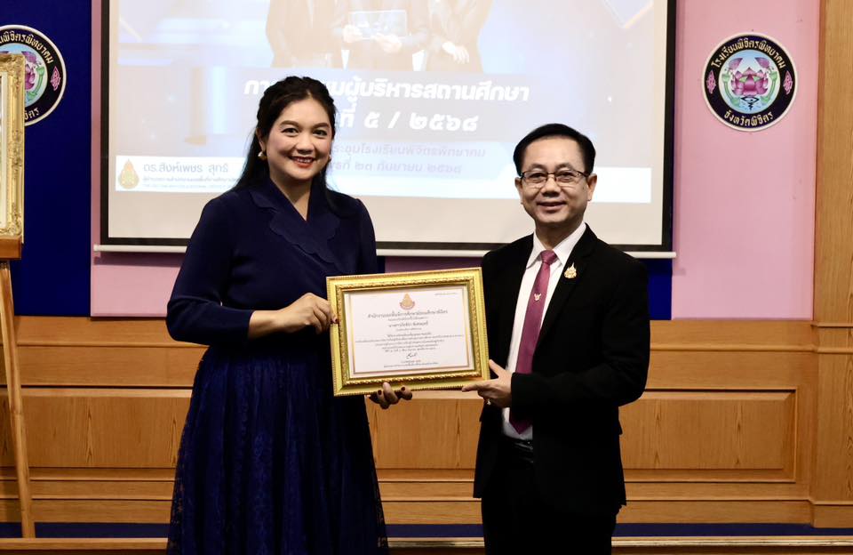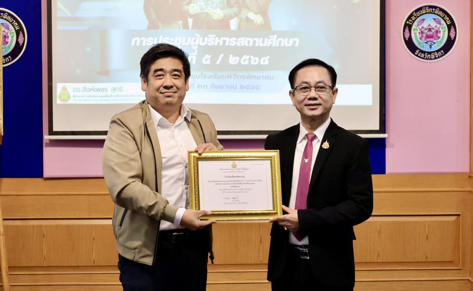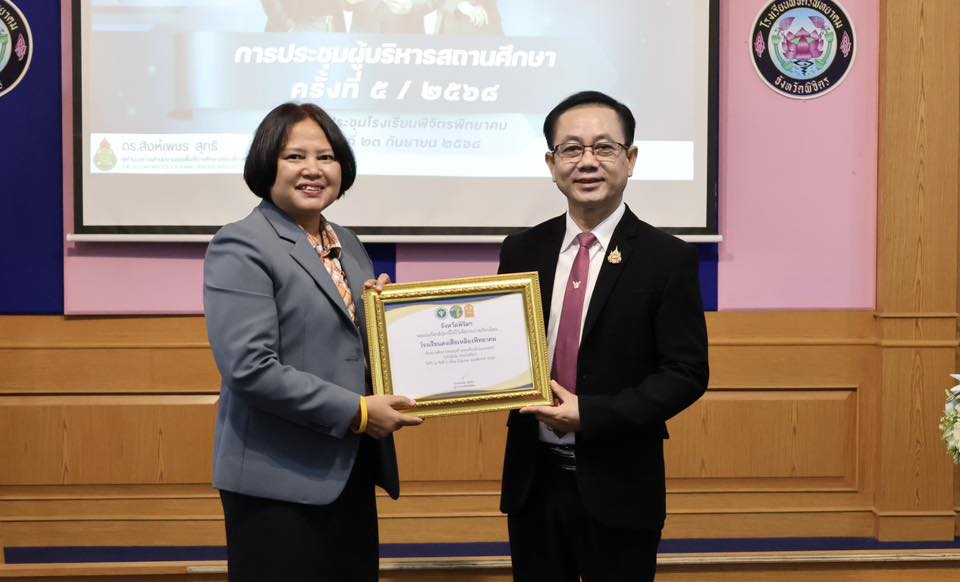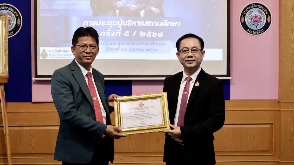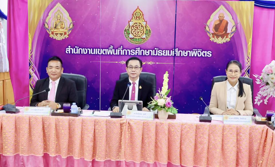 วันที่ 23 กันยายน 2568 ดร.สิงห์เพชร สุทธิ ผู้อำนวยการสำนักงานเขตพื้นที่การศึกษามัธยมศึกษาพิจิตร พร้อมด้วยนายวณัฐพงศ์ ทองคำ รองผู้อำนวยการสำนักงานเขตพื้นที่การศึกษามัธยมศึกษาพิจิตร นางสาวนิรัติศัย สิทธิรักษ์ รองผู้อำนวยการสำนักงานเขตพื้นที่การศึกษามัธยมศึกษาพิจิตร ผู้บริหารสถานศึกษาในสังกัด และ ผู้อำนวยการกลุ่ม ร่วมกล่าวคำปฏิญาณเขตสุจริต พร้อมแสดงสัญลักษณ์ในการประกาศเจตนารมณ์ต่อต้านการทุจริตทุกรูปแบบ และร่วมประชุมผู้บริหารสถานศึกษา ครั้งที่ 5/2568 ของสำนักงานเขตพื้นที่การศึกษามัธยมศึกษาพิจิตร เพื่อชี้แจงนโยบาย หารือข้อราชการต่างๆ และได้เน้นย้ำทำความเข้าใจ การขับเคลื่อนนโยบายของรัฐมนตรีว่าการกระทรวงศึกษาธิการ “เรียนดี มีคุณธรรม”นโยบายและจุดเน้นสพฐ. พร้อมมอบนโยบายการบริหารการจัดการศึกษาสู่การปฏิบัติ พร้อมกันนี้ได้ร่วมแสดงความยินดีกับผู้บริหารสถานศึกษา ข้าราชการครู และมอบเกียรติบัตรให้แก่ผู้บริหารสถานศึกษา และข้าราชการครู ผู้มีผลงานดีเด่น ประสบความสำเร็จ เป็นที่ประจักษ์ ณ โรงเรียนพิจิตรพิทยาคม อำเภอเมือง จังหวัดพิจิตร