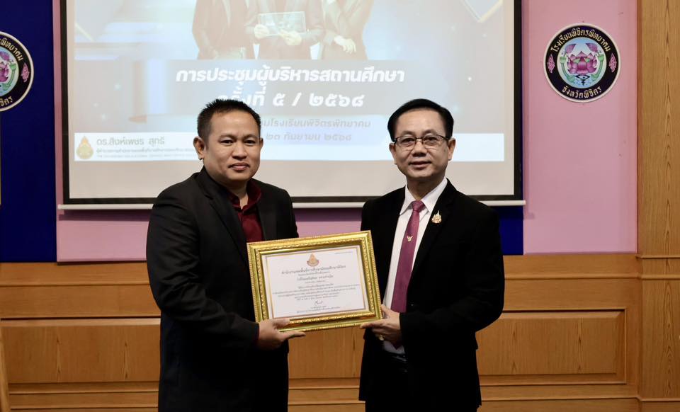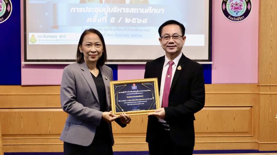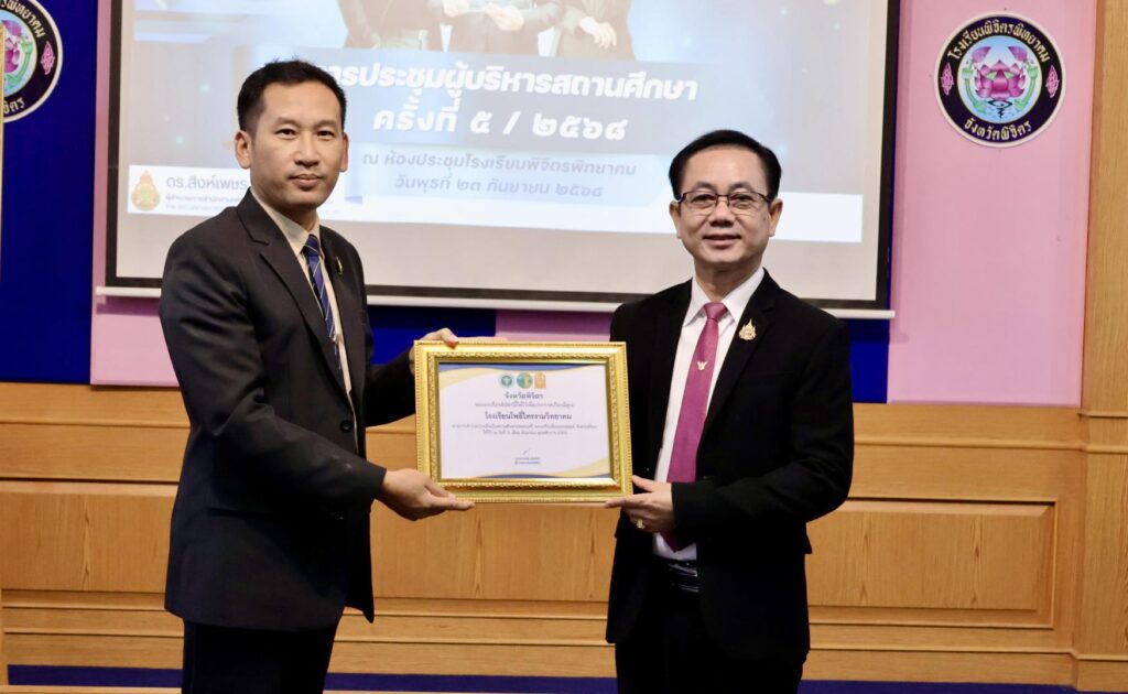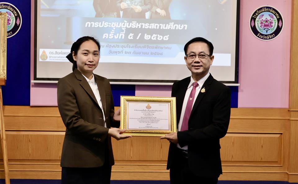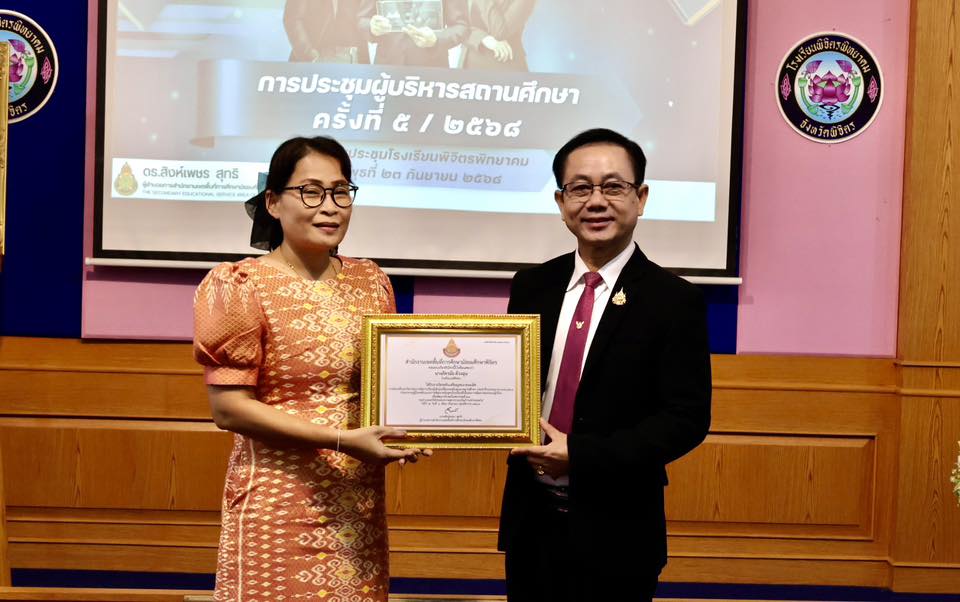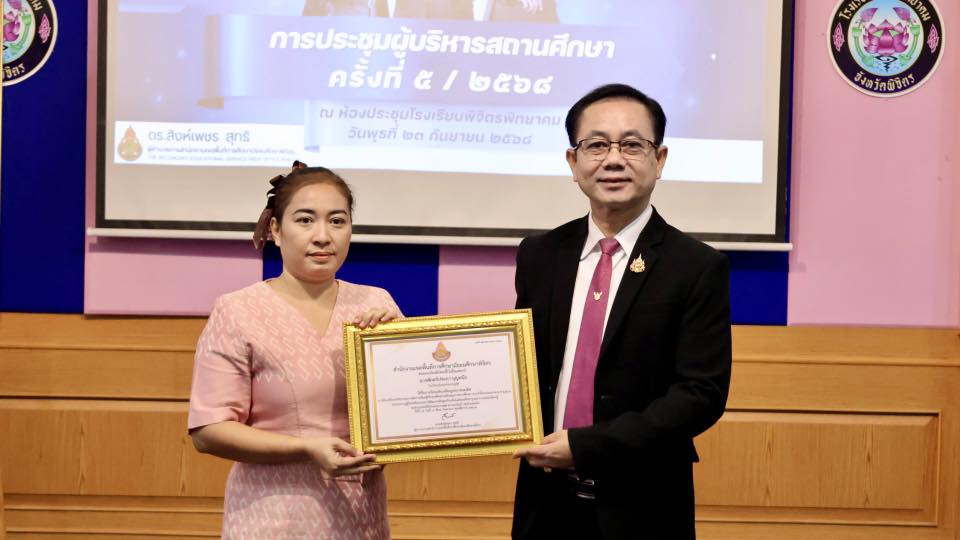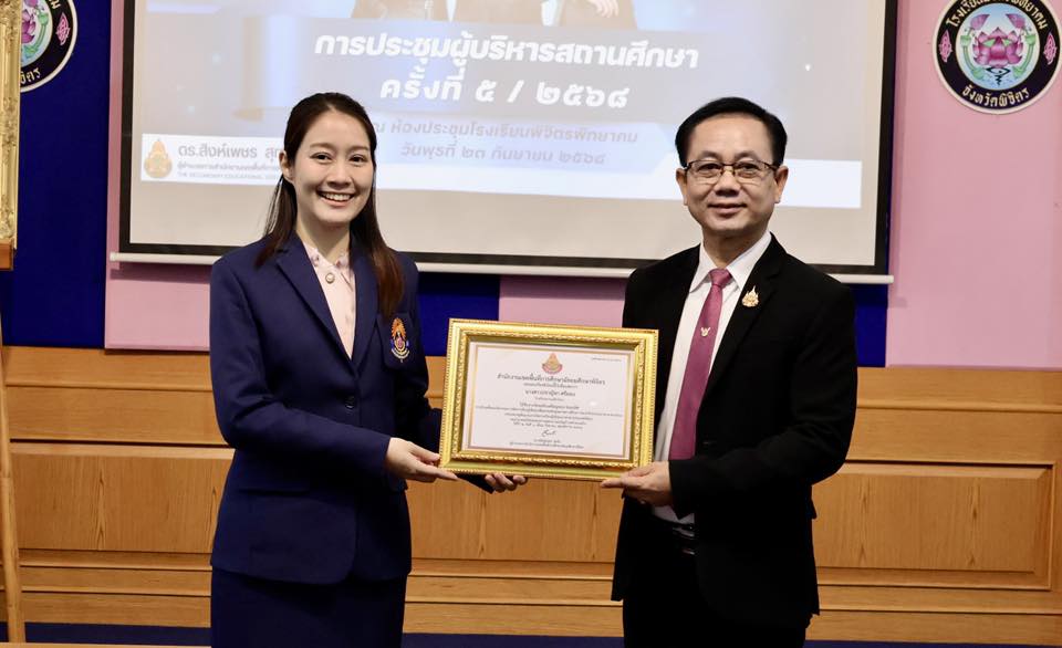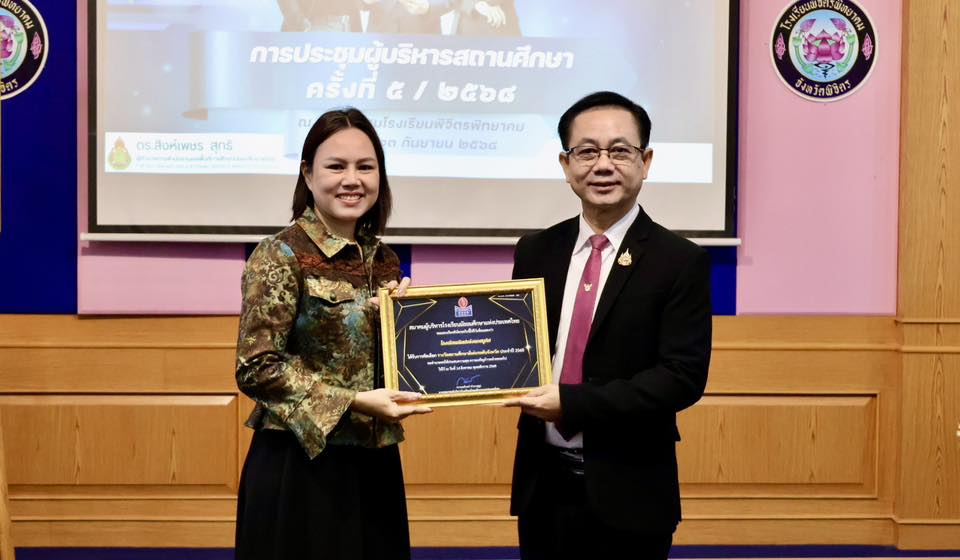 วันที่ 23 กันยายน 2568 ดร.สิงห์เพชร สุทธิ ผู้อำนวยการสำนักงานเขตพื้นที่การศึกษามัธยมศึกษาพิจิตร พร้อมด้วยนายวณัฐพงศ์ ทองคำ รองผู้อำนวยการสำนักงานเขตพื้นที่การศึกษามัธยมศึกษาพิจิตร นางสาวนิรัติศัย สิทธิรักษ์ รองผู้อำนวยการสำนักงานเขตพื้นที่การศึกษามัธยมศึกษาพิจิตร ผู้บริหารสถานศึกษาในสังกัด และ ผู้อำนวยการกลุ่ม ร่วมกล่าวคำปฏิญาณเขตสุจริต พร้อมแสดงสัญลักษณ์ในการประกาศเจตนารมณ์ต่อต้านการทุจริตทุกรูปแบบ และร่วมประชุมผู้บริหารสถานศึกษา ครั้งที่ 5/2568 ของสำนักงานเขตพื้นที่การศึกษามัธยมศึกษาพิจิตร เพื่อชี้แจงนโยบาย หารือข้อราชการต่างๆ และได้เน้นย้ำทำความเข้าใจ การขับเคลื่อนนโยบายของรัฐมนตรีว่าการกระทรวงศึกษาธิการ “เรียนดี มีคุณธรรม”นโยบายและจุดเน้นสพฐ. พร้อมมอบนโยบายการบริหารการจัดการศึกษาสู่การปฏิบัติ พร้อมกันนี้ได้ร่วมแสดงความยินดีกับผู้บริหารสถานศึกษา ข้าราชการครู และมอบเกียรติบัตรให้แก่ผู้บริหารสถานศึกษา และข้าราชการครู ผู้มีผลงานดีเด่น ประสบความสำเร็จ เป็นที่ประจักษ์ ณ โรงเรียนพิจิตรพิทยาคม อำเภอเมือง จังหวัดพิจิตร