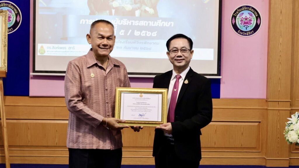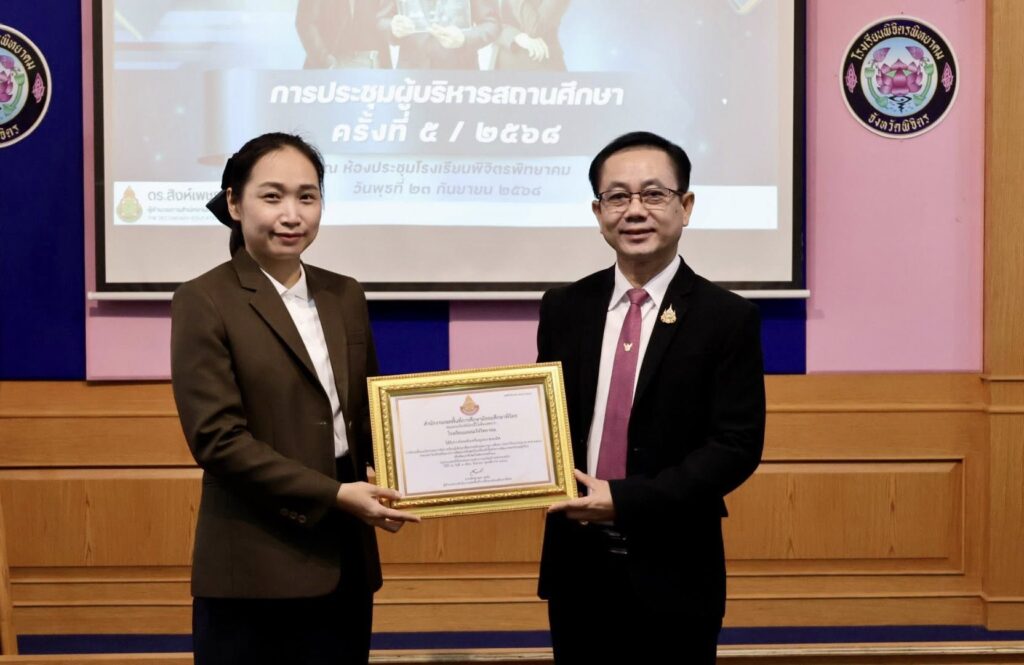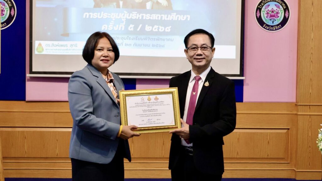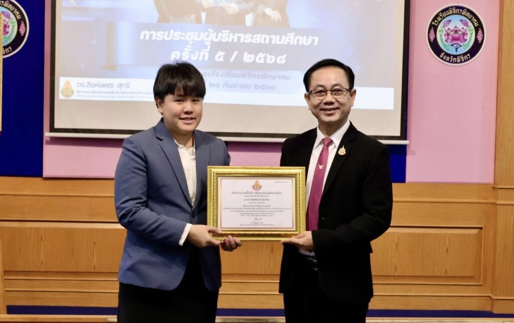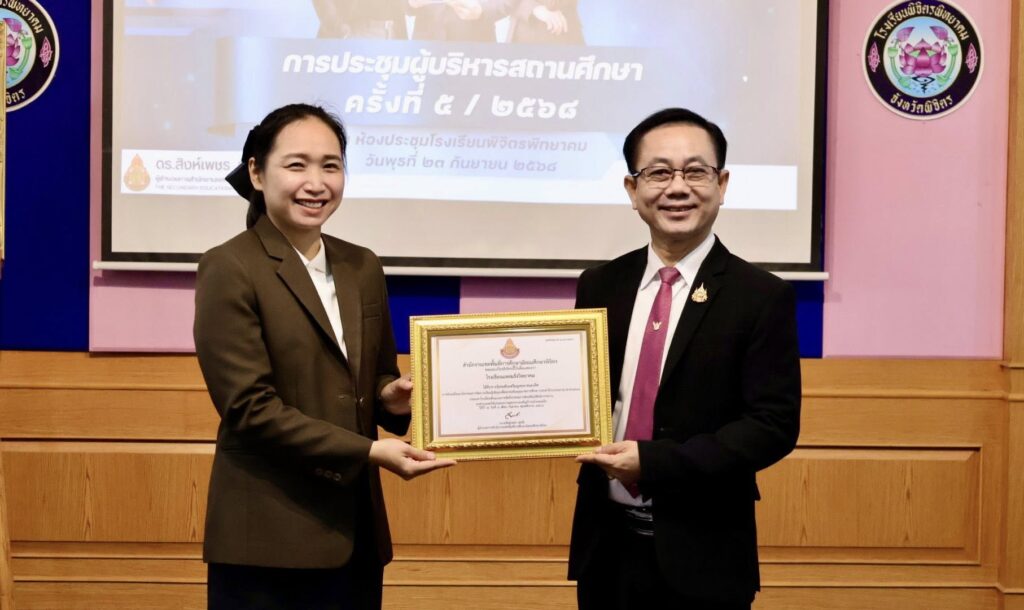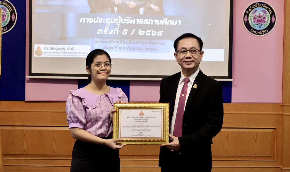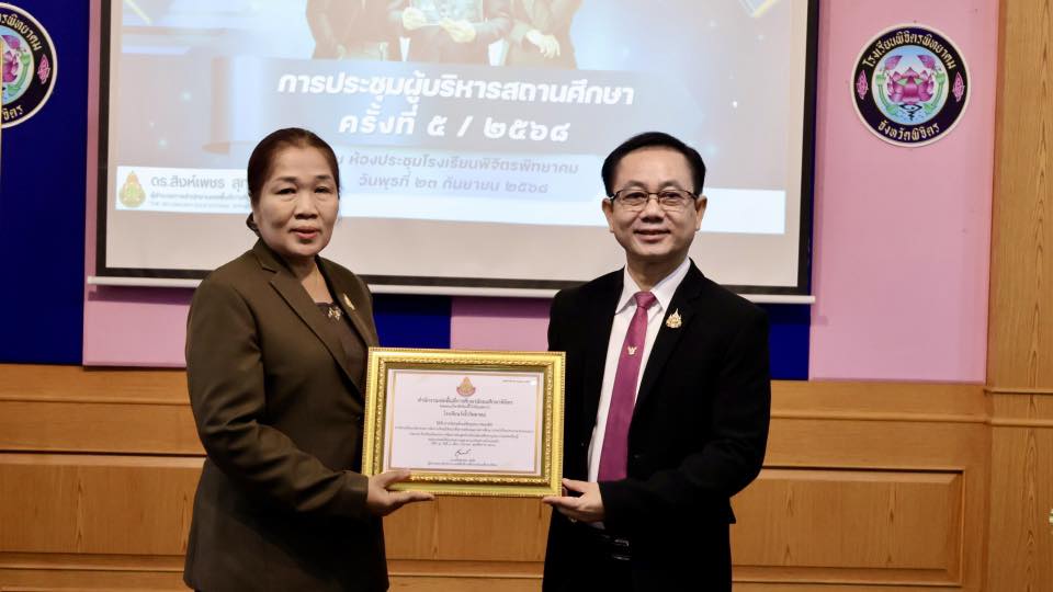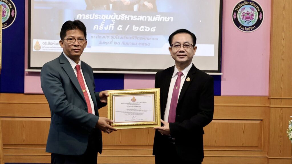 วันที่ 23 กันยายน 2568 ดร.สิงห์เพชร สุทธิ ผู้อำนวยการสำนักงานเขตพื้นที่การศึกษามัธยมศึกษาพิจิตร พร้อมด้วยนายวณัฐพงศ์ ทองคำ รองผู้อำนวยการสำนักงานเขตพื้นที่การศึกษามัธยมศึกษาพิจิตร นางสาวนิรัติศัย สิทธิรักษ์ รองผู้อำนวยการสำนักงานเขตพื้นที่การศึกษามัธยมศึกษาพิจิตร ผู้บริหารสถานศึกษาในสังกัด และ ผู้อำนวยการกลุ่ม ร่วมกล่าวคำปฏิญาณเขตสุจริต พร้อมแสดงสัญลักษณ์ในการประกาศเจตนารมณ์ต่อต้านการทุจริตทุกรูปแบบ และร่วมประชุมผู้บริหารสถานศึกษา ครั้งที่ 5/2568 ของสำนักงานเขตพื้นที่การศึกษามัธยมศึกษาพิจิตร เพื่อชี้แจงนโยบาย หารือข้อราชการต่างๆ และได้เน้นย้ำทำความเข้าใจ การขับเคลื่อนนโยบายของรัฐมนตรีว่าการกระทรวงศึกษาธิการ “เรียนดี มีคุณธรรม”นโยบายและจุดเน้นสพฐ. พร้อมมอบนโยบายการบริหารการจัดการศึกษาสู่การปฏิบัติ พร้อมกันนี้ได้ร่วมแสดงความยินดีกับผู้บริหารสถานศึกษา ข้าราชการครู และมอบเกียรติบัตรให้แก่ผู้บริหารสถานศึกษา และข้าราชการครู ผู้มีผลงานดีเด่น ประสบความสำเร็จ เป็นที่ประจักษ์ ณ โรงเรียนพิจิตรพิทยาคม อำเภอเมือง จังหวัดพิจิตร