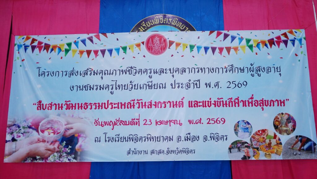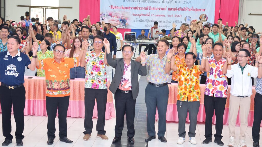ข่าวสพม.พิจิตร วันที่ 23 เมษายน 2569 – ผอ.สพม.พิจิตร พร้อมด้วย นางสาวนิรัติศัย สิทธิรักษ์ รองผู้อำนวยการสำนักงานเขตพื้นที่การศึกษามัธยมศึกษาพิจิตร ผู้บริหารสถานศึกษาในสังกัด ศึกษานิเทศก์ ผู้อำนวยการกลุ่ม/หน่วย และบุคลากรในสังกัด เข้าร่วมพิธีเปิดพิธีเปิดกิจกรรมโครงการ “จับมือไว้ แล้วไปด้วยกัน” และ “ชมรมครูไทยวัยเกษียณ” ประจำปี พ.ศ. 2569 จัดโดยสำนักงานส่งเสริมสวัสดิการและสวัสดิภาพครูและบุคลากรทางการศึกษา จังหวัดพิจิตร (สกสค. จังหวัดพิจิตร)