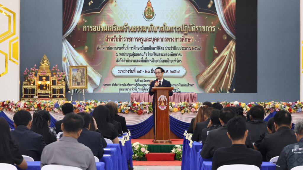 ข่าวสพม.พิจิตร วันที่ 25 มีนาคม 2569 – สพม.พิจิตร อบรมเสริมสร้างธรรมาภิบาลในการปฏิบัติราชการสำหรับข้าราชการครูและบุคลากรทางศึกษา สังกัดสำนักงานเขตพื้นที่การศึกษามัธยมศึกษาพิจิตร ประจำปีงบประมาณ 2569 ระหว่างวันที่ 25 – 26 มีนาคม 2569 ณ หอประชุมคุ้มดอกแก้ว โรงเรียนสระหลวงพิทยาคม