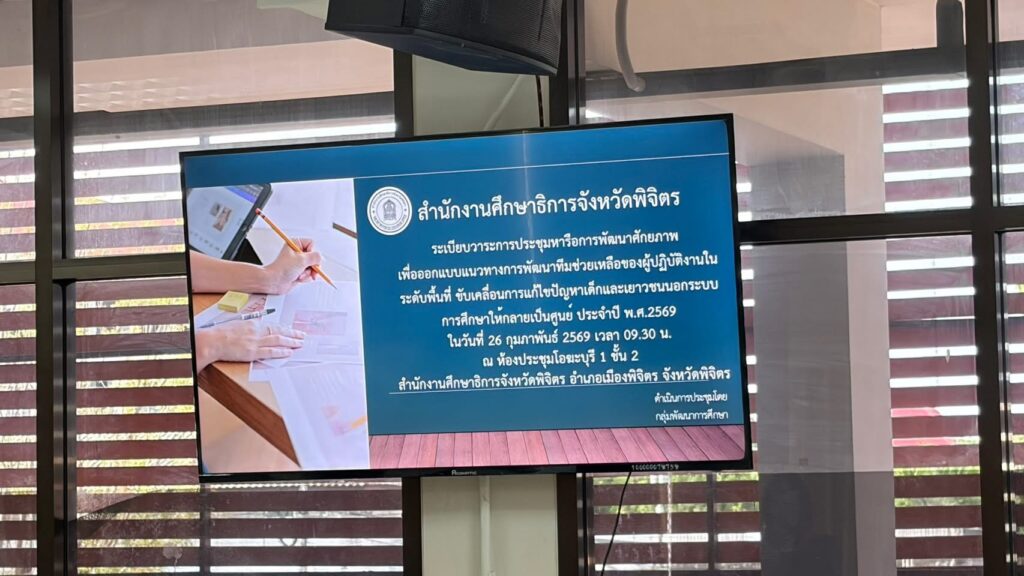 วันที่ 26 กุมภาพันธ์ 2569 ดร.สิงห์เพชร สุทธิ ผู้อำนวยการสำนักงานเขตพื้นที่การศึกษามัธยมศึกษาพิจิตร มอบหมายให้ บุคลากรกลุ่มส่งเสริมการจัดการศึกษา เข้าร่วมประชุมหารือออกแบบแนวทางการพัฒนาทีมช่วยเหลือของผู้ปฏิบัติงานในพื้นที่ขับเคลื่อนการแก้ไขปัญหาเด็กและเยาวชนนอกระบบการศึกษาให้กลายเป็นศูนย์ประจำปี พ.ศ.2569 โดยมี นายธนิต ภูมิถาวร รองผู้ว่าราชการจังหวัดพิจิตร เป็นประธานในการประชุม ณ ห้องประชุมโอฆะบุรี 1 ชั้น 2 สำนักงานศึกษาธิการจังหวัดพิจิตร
