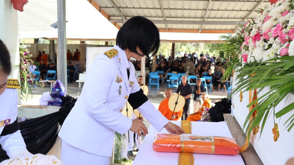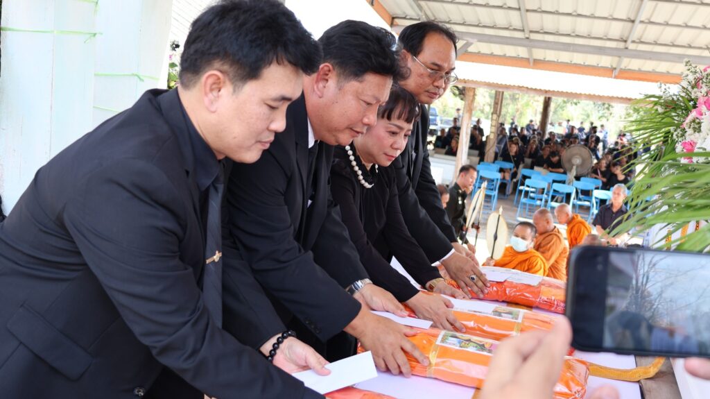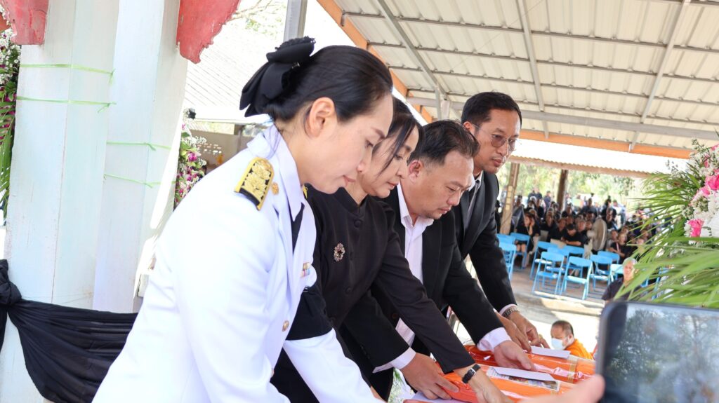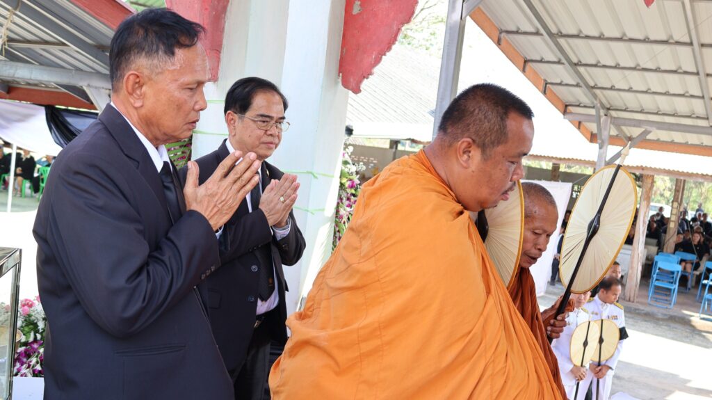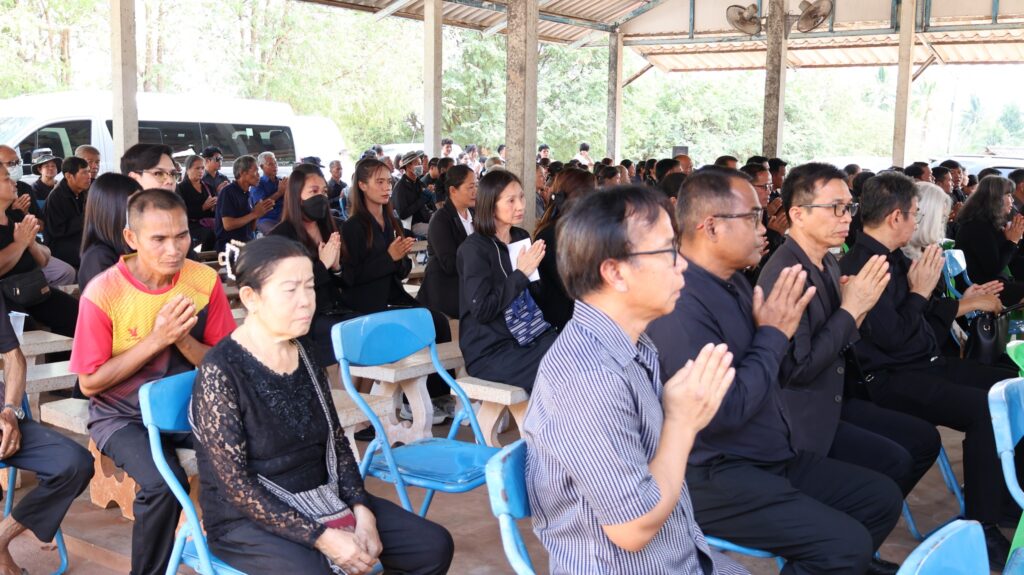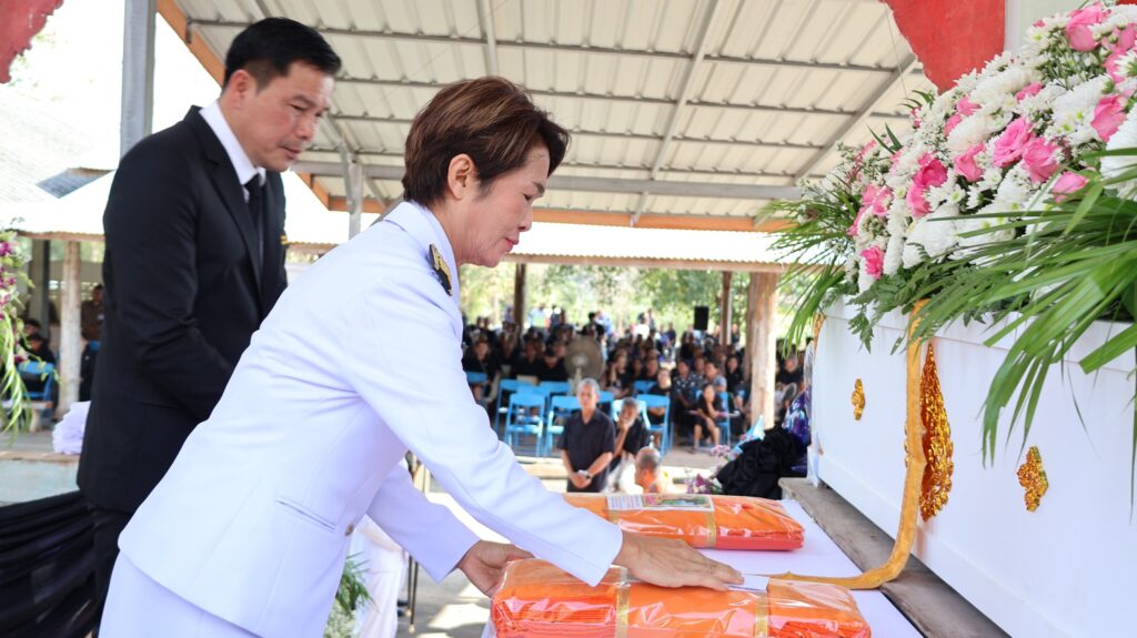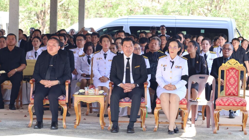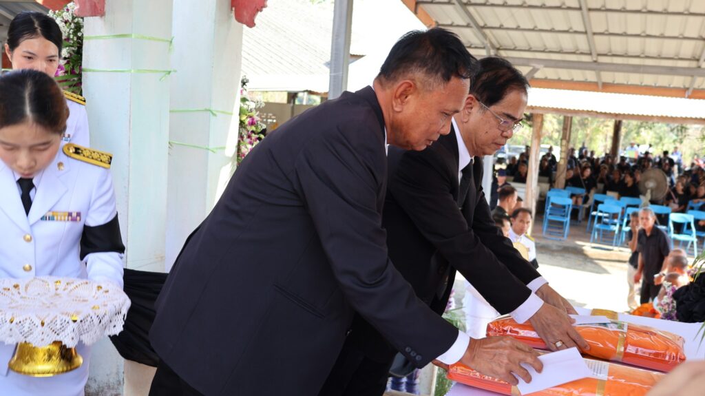 ในการนี้ นายสุรินทร์ มั่นประสงค์ อดีตผู้ช่วยเลขาธิการคณะกรรมการการศึกษาขั้นพื้นฐาน ให้เกียรติเป็นประธานในพิธีพระราชทานเพลิงศพ กรณีพิเศษ โดยมีหัวหน้าส่วนราชการ ข้าราชการ และประชาชนในพื้นที่ร่วมแสดงความอาลัยอย่างพร้อมเพรียงกัน