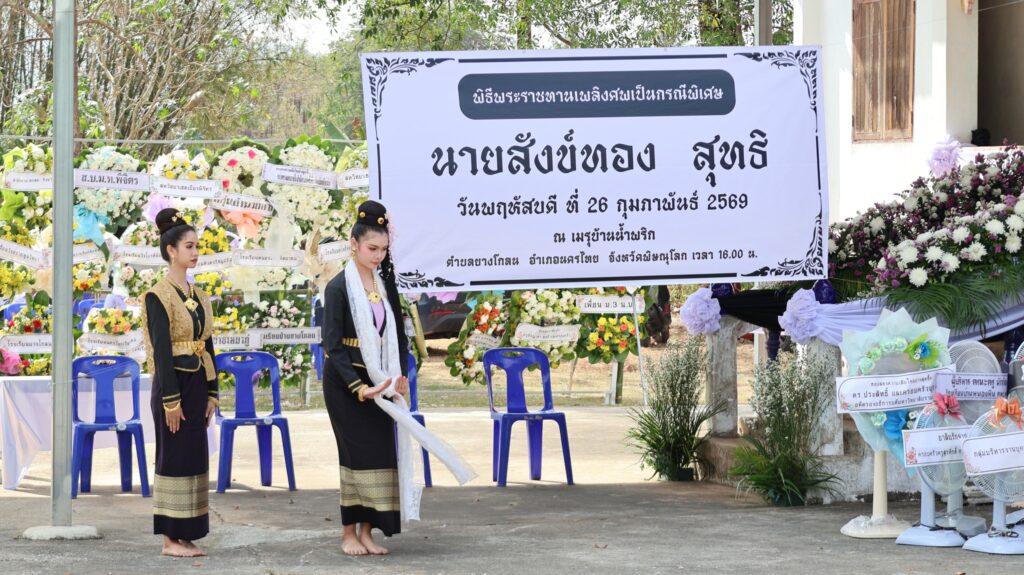 พิธีจัดขึ้น ณ เมรุบ้านน้ำพริก ตำบลยางโกลน อำเภอนครไทย จังหวัดพิษณุโลก บรรยากาศเป็นไปด้วยความโศกเศร้าและสมเกียรติ
