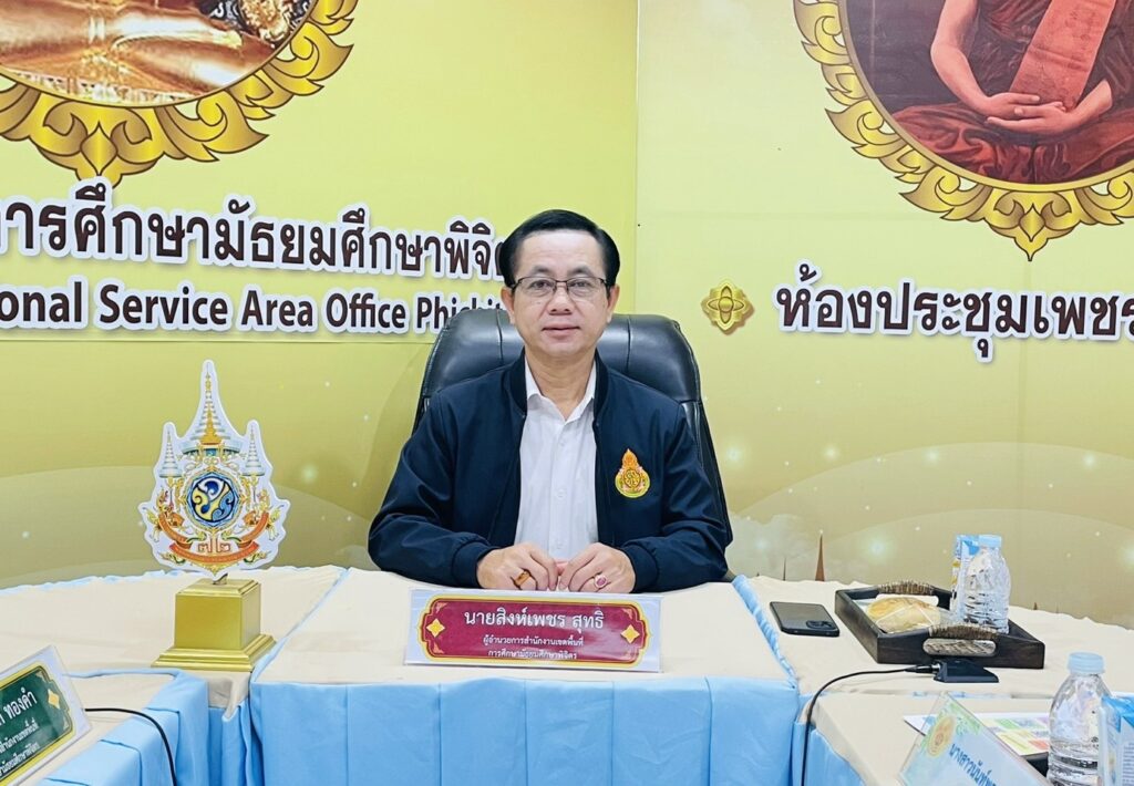 วันที่ 26 มีนาคม 2569 ดร.สิงห์เพชร สุทธิ ผู้อำนวยการสำนักงานเขตพื้นที่การศึกษามัธยมศึกษาพิจิตร พร้อมด้วย นายวณัฐพงศ์ ทองคำ รองผู้อำนวยการสำนักงานเขตพื้นที่การศึกษามัธยมศึกษาพิจิตร และผู้อำนวยการกลุ่ม/หน่วย ในสังกัดสำนักงานเขตพื้นที่การศึกษามัธยมศึกษาพิจิตร ร่วมรับชมรายการ “พฤหัสเช้า ข่าว สพฐ.” ครั้งที่ 12/2569 ผ่านระบบออนไลน์ เพื่อรับฟังข่าวสาร นโยบาย ข้อราชการ และแนวทางการจัดการศึกษาจากสำนักงานคณะกรรมการการศึกษาขั้นพื้นฐาน เพื่อนำไปใช้เป็นแนวทางในการบริหารจัดการและพัฒนาการศึกษาในเขตพื้นที่ให้เกิดประสิทธิภาพ สอดคล้องกับนโยบายและทิศทางการจัดการศึกษาของกระทรวงศึกษาธิการ