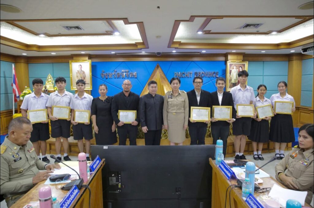 วันที่ 27 พฤศจิกายน 2568 ดร.สิงห์เพชร สุทธิ ผู้อำนวยการสำนักงานเขตพื้นที่การศึกษามัธยมศึกษาพิจิตร มอบหมายให้ นางนันทนา มั่นสัตย์รักษ์สกุล ผู้อำนวยการกลุ่มอำนวยการ เข้าร่วมการประชุมคณะกรมการจังหวัดและหัวหน้าส่วนราชการจังหวัดพิจิตร ครั้งที่ 11/2568 ณ ห้องประชุมหลวงพ่อเพชร ชั้น 4 ศาลากลางจังหวัดพิจิตร อ.เมืองพิจิตร จ.พิจิตรโดยมี นางสาวธนียา นัยพินิจ ผู้ว่าราชการจังหวัดพิจิตร เป็นประธานการประชุมฯ นายกิติพล เวชกุล รองผู้ว่าราชการจังหวัดพิจิตร นายธนิต ภูมิถาวร รองผู้ว่าราชการจังหวัดพิจิตร และหัวหน้าส่วนราชการ เข้าร่วมประชุม ทั้งนี้ ในที่ประชุมมีการติดตามนโยบายสำคัญเร่งด่วนและผลการดำเนินงานของส่วนราชการ อาทิ แนวทางปฏิบัติอันเกี่ยวเนื่องกับงานพระบรมศพสมเด็จพระนางเจ้าสิริกิติ์ พระบรมราชินีนาถ พระบรมราชชนนีพันปีหลวง ผลการดำเนินการป้องกันปราบปรามยาเสพติด สภาวะอากาศและสถานการณ์น้ำ สถานการณ์การผลิตพืชเศรษฐกิจและการตลาดพืชเศรษฐกิจสำคัญของจังหวัดพิจิตร รายงานผลการเบิกจ่ายงบประมาณจังหวัดพิจิตร ประจำปีงบประมาณ พ.ศ.2569 เป็นต้นนอกจากนี้ ผู้ว่าราชการจังหวัดพิจิตรยังได้ มอบเกียรติบัตรแก่ผู้แทนนักเรียนนักศึกษา ที่ได้รับรางวัลจากการแข่งขัน Global Robotic Competition 2025 (GRC 2025) จำนวน 13 ราย จาก โรงเรียนบางมูลนากภูมิวิทยา และ โรงเรียนสากเหล็กวิทยา สังกัดสำนักงานเขตพื้นที่การศึกษามัธยมศึกษาพิจิตรเพื่อเชิดชูความสามารถและสร้างขวัญกำลังใจให้แก่นักเรียนที่สร้างชื่อเสียงแก่จังหวัดพิจิตร