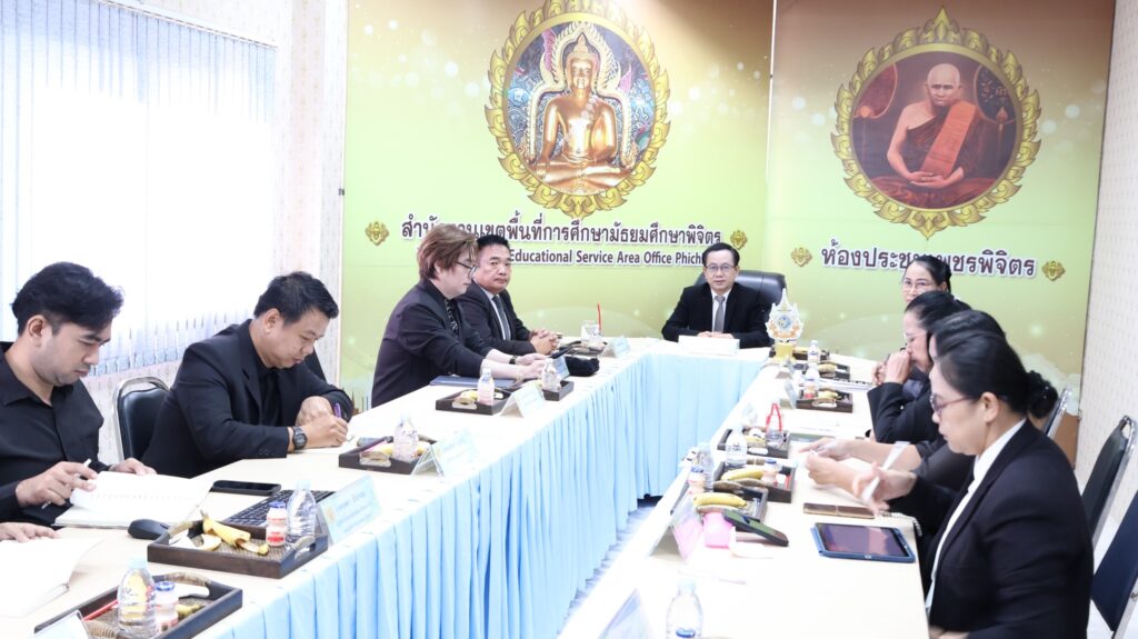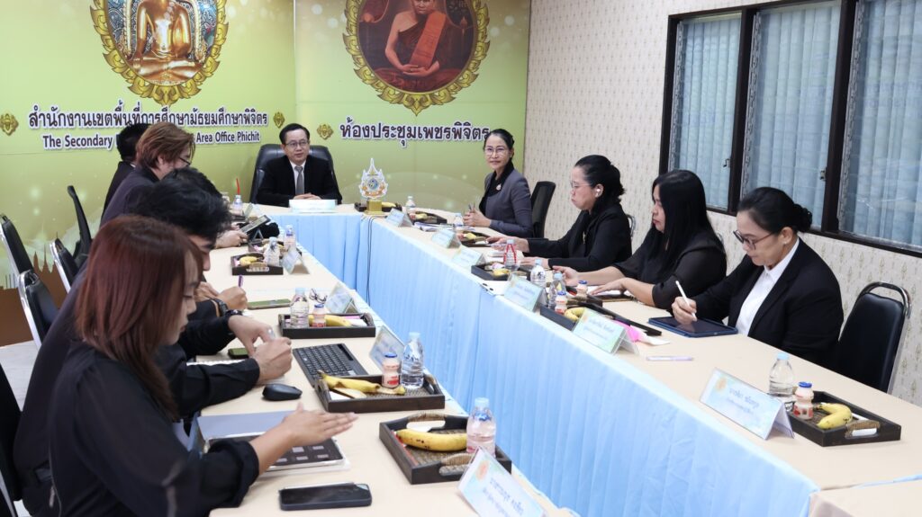 วันที่ 4 ธันวาคม 2568 ดร.สิงห์เพชร สุทธิ ผู้อำนวยการสำนักงานเขตพื้นที่การศึกษามัธยมศึกษาพิจิตร พร้อมด้วย นายวณัฐพงศ์ ทองคำ รองผู้อำนวยการสำนักงานเขตพื้นที่การศึกษามัธยมศึกษาพิจิตร นางสาวนิรัติศัย สิทธิรักษ์ รองผู้อำนวยการสำนักงานเขตพื้นที่การศึกษามัธยมศึกษาพิจิตร ผู้อำนวยการกลุ่ม/หน่วย สพม.พิจิตร รับชมรายการ “พฤหัสเช้า ข่าว สพฐ.” ครั้งที่ 47/2568 เพื่อรับฟังข่าวสาร นโยบาย ข้อราชการ และแนวทางการจัดการศึกษา จาก สพฐ. เพื่อดำเนินการพัฒนาการศึกษาให้เกิดประสิทธิภาพและสอดคล้อง การบริหารด้านการศึกษา ในเขตพื้นที่ ผ่านระบบ (VIDEO CONFERENCE) ณ ห้องประชุมเพชรพิจิตร สพม.พิจิตร อำเภอเมือง จังหวัดพิจิตร