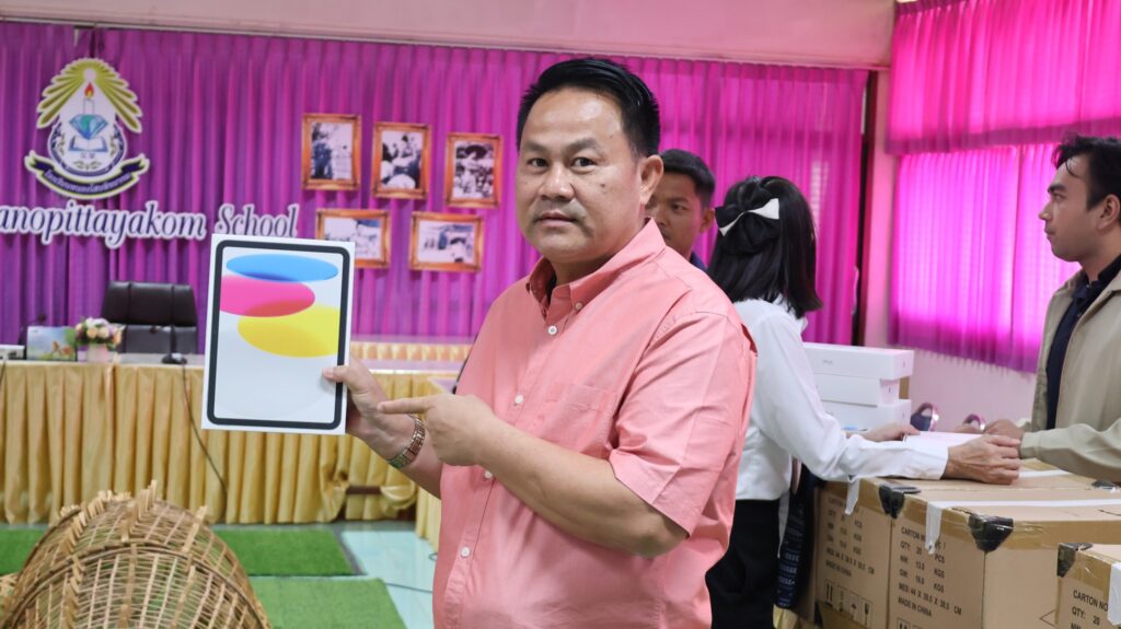 การดำเนินงานดังกล่าวเป็นการรับมอบอุปกรณ์ Apple iPad รุ่น A16 ความจุ 128GB (WiFi + Cellular) พร้อมปากกา Stylus Pen และเคสคีย์บอร์ด ภายใต้โครงการเช่าใช้อุปกรณ์การเรียนการสอนสำหรับครูและนักเรียน ตามโครงการส่งเสริมการเรียนรู้ขั้นพื้นฐานทุกที่ทุกเวลา “Anywhere Anytime”