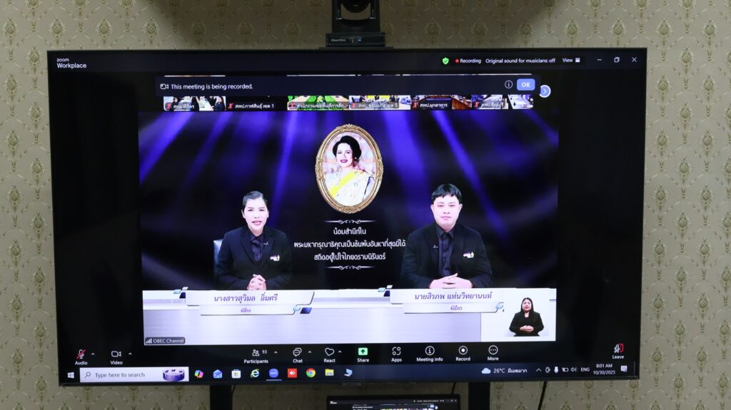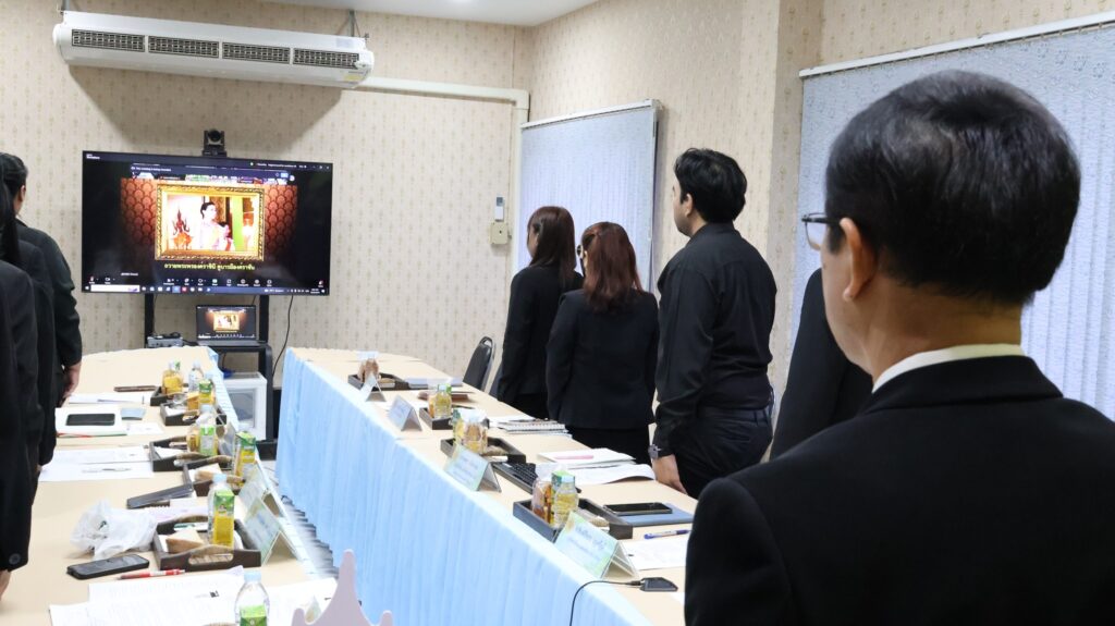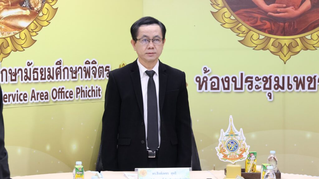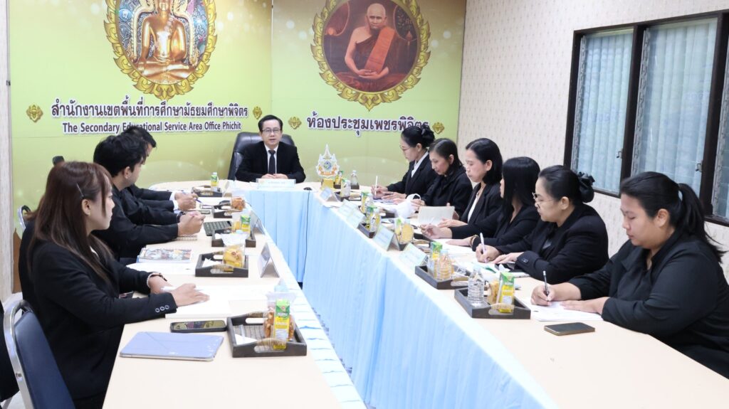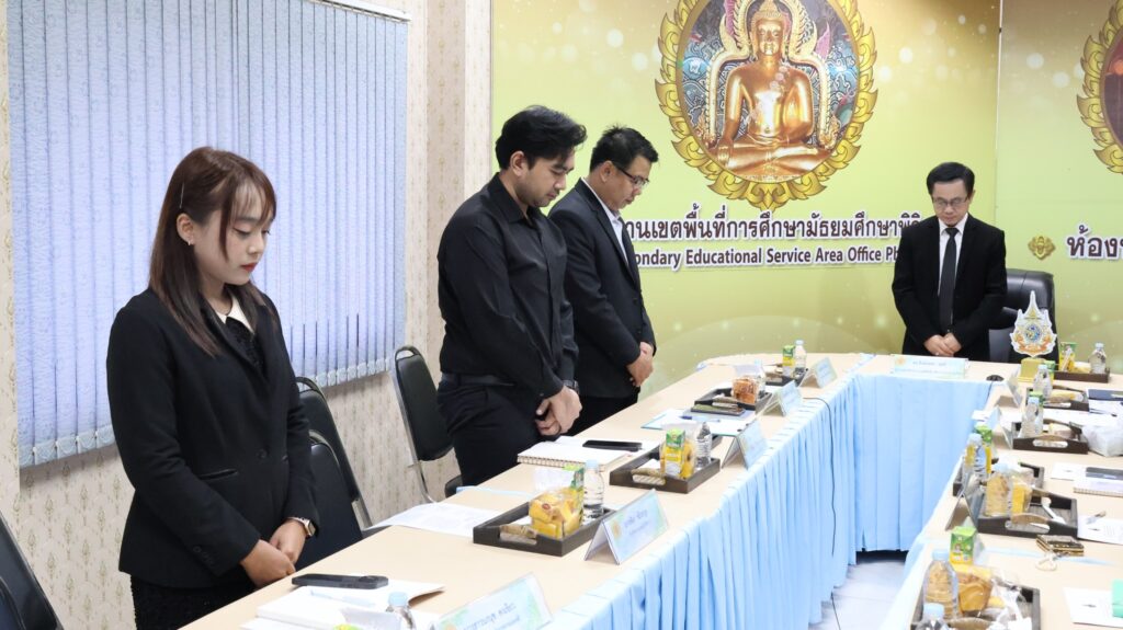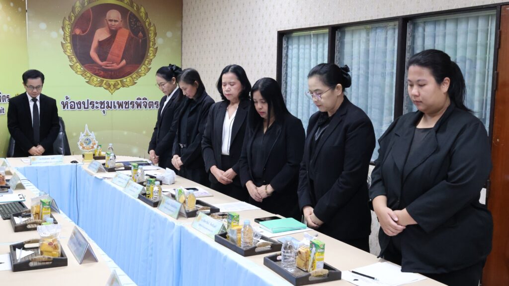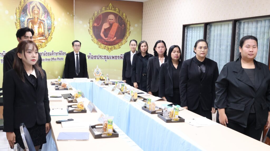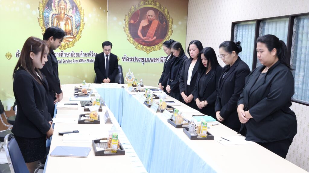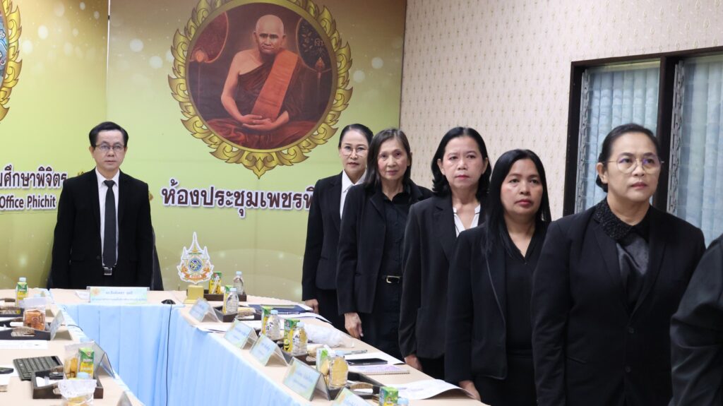 วันที่ 30 ตุลาคม 2568 ดร.สิงห์เพชร สุทธิ ผู้อำนวยการสำนักงานเขตพื้นที่การศึกษามัธยมศึกษาพิจิตร พร้อมด้วย นางสาวนิรัติศัย สิทธิรักษ์ รองผู้อำนวยการสำนักงานเขตพื้นที่การศึกษามัธยมศึกษาพิจิตร ผู้อำนวยการกลุ่ม/หน่วย สพม.พิจิตร ร่วมยืนสงบนิ่งน้อมถวายความอาลัย สมเด็จพระนางเจ้าสิริกิติ์ พระบรมราชินีนาถ พระบรมราชชนนีพันปีหลวง เพื่อแสดงความจงรักภักดีและน้อมรำลึกในพระมหากรุณาธิคุณอันหาที่สุดมิได้หลังจากนั้นรับชมรายการ “พฤหัสเช้า ข่าว สพฐ.” ครั้งที่ 42/2568 เพื่อรับฟังข่าวสาร นโยบาย ข้อราชการ และแนวทางการจัดการศึกษา จาก สพฐ. เพื่อดำเนินการพัฒนาการศึกษาให้เกิดประสิทธิภาพและสอดคล้อง การบริหารด้านการศึกษา ในเขตพื้นที่ ผ่านระบบ (VIDEO CONFERENCE) ณ ห้องประชุมเพชรพิจิตร สพม.พิจิตร อำเภอเมือง จังหวัดพิจิตร