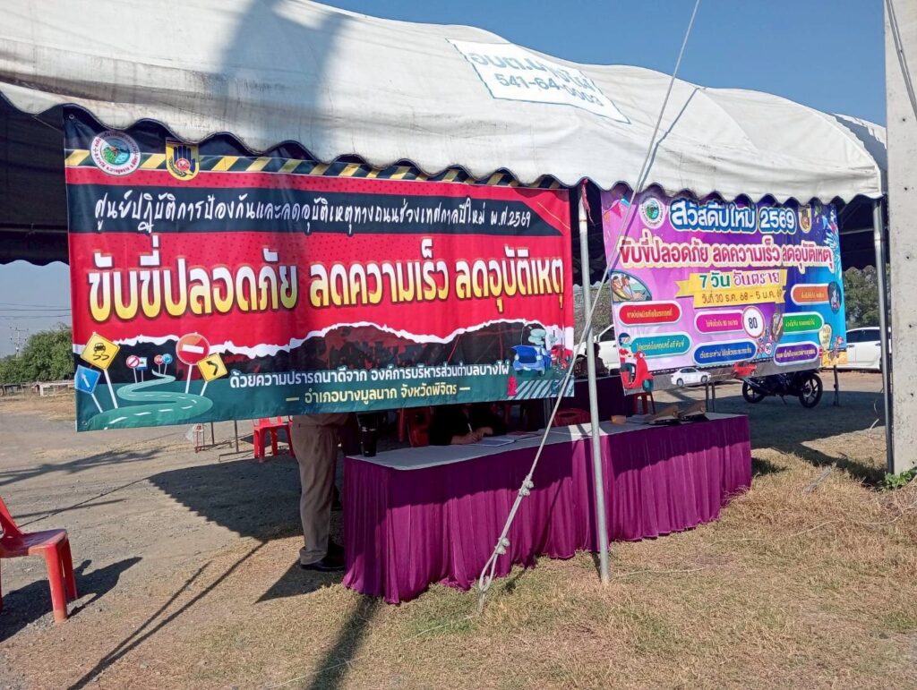 ผู้อำนวยการสำนักงานเขตพื้นที่การศึกษามัธยมศึกษาพิจิตร มอบหมายให้ นายวณัฐพงศ์ ทองคำ รองผู้อำนวยการสำนักงานเขตพื้นที่การศึกษามัธยมศึกษาพิจิตร และบุคลากรกลุ่มอำนวยการ ออกตรวจเยี่ยมจุดตรวจและติดตามผลการปฏิบัติงานป้องกันและลดอุบัติเหตุทางถนนช่วงเทศกาลปีใหม่ พ.ศ. 2569 จังหวัดพิจิตร ณ จุดตรวจพื้นที่อำเภอบางมูลนาก และมอบสิ่งของตรวจเยี่ยมสร้างขวัญ และกำลังใจแก่เจ้าหน้าที่ผู้ปฏิบัติงานประจำจุดตรวจที่