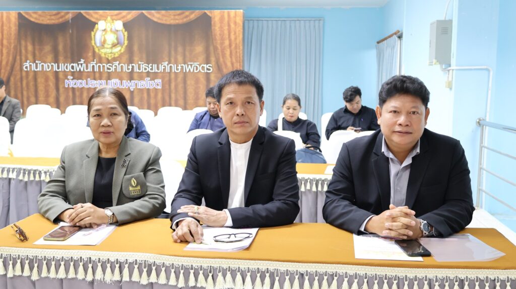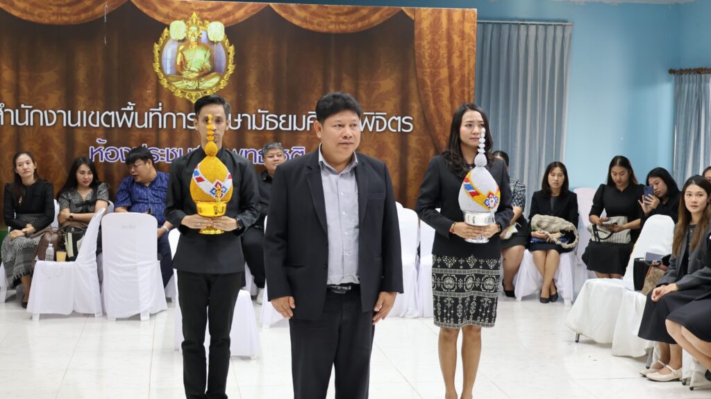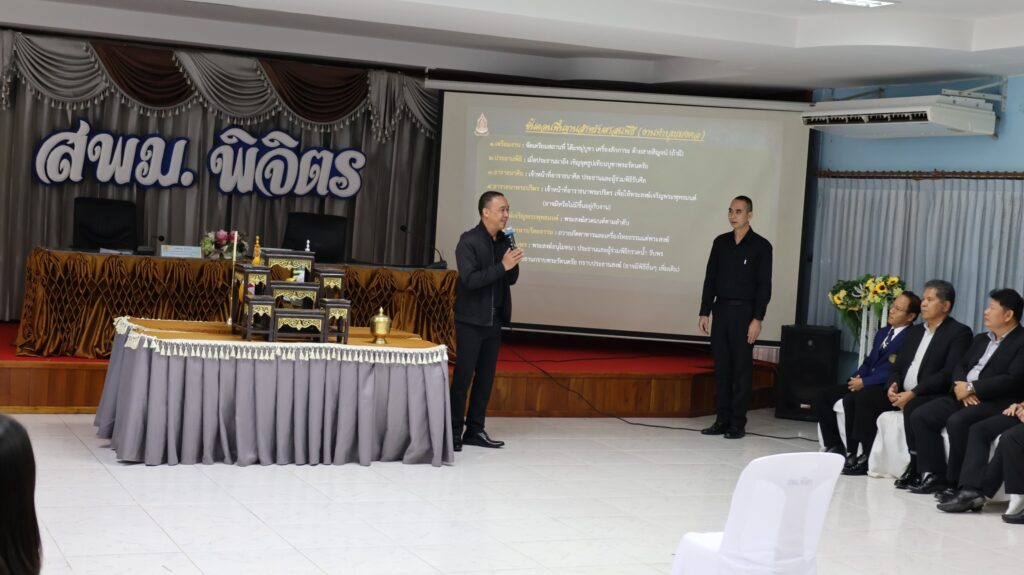 วันที่ 30 มกราคม 2569 ดร.สิงห์เพชร สุทธิ ผู้อำนวยการสำนักงานเขตพื้นที่การศึกษามัธยมศึกษาพิจิตร มอบหมายให้ นายวณัฐพงศ์ ทองคำ รองผู้อำนวยการสำนักงานเขตพื้นที่การศึกษามัธยมศึกษาพิจิตร ประธานในพิธีเปิดโครงการยกระดับการบริหารจัดการองค์กรคุณภาพสู่ความเป็นเลิศ กิจกรรมส่งเสริมความรู้ในการปฏิบัติงานพระราชพิธี งานรัฐพิธี และศาสนพิธีฯ โดยมี นางนันทนา มั่นสัตยรักสกุล ปฏิบัติหน้าที่ผู้อำนวยการกลุ่มอำนวยการ เป็นผู้กล่าวรายงาน การจัดกิจกรรมในครั้งนี้มีวัตถุประสงค์เพื่อเสริมสร้างความรู้ ความเข้าใจ และทักษะในการปฏิบัติงานด้านพระราชพิธี งานรัฐพิธี และศาสนพิธี ให้แก่ผู้บริหารสถานศึกษา ผู้อำนวยการกลุ่ม/หน่วย และบุคลากรทางการศึกษา เพื่อให้สามารถนำความรู้ไปประยุกต์ใช้ในการปฏิบัติงานได้อย่างถูกต้อง เหมาะสม ทั้งนี้ สำนักงานเขตพื้นที่การศึกษามัธยมศึกษาพิจิตร เล็งเห็นถึงความสำคัญของศาสนาและพิธีกรรมทางศาสนา ซึ่งเป็นรากฐานสำคัญของสังคมไทยและเป็นเครื่องยึดเหนี่ยวจิตใจ จึงได้จัดการอบรมดังกล่าวขึ้น เพื่อพัฒนาศักยภาพบุคลากรด้านการจัดกิจกรรมพิธีการให้มีความรู้ ความเข้าใจในลำดับขั้นตอนอย่างถูกต้อง มีผู้เข้าร่วมจากสถานศึกษาในสังกัดจำนวน 30 โรงเรียน รวมทั้งผู้บริหารสถานศึกษา ครู บุคลากรทางการศึกษา และบุคลากรในสำนักงานเขตพื้นที่การศึกษา รวมทั้งสิ้นประมาณ 80 คน ณ ห้องประชุมเงินพุทธโชติ สพม.พิจิตร อำเภอเมือง จังหวัดพิจิตร