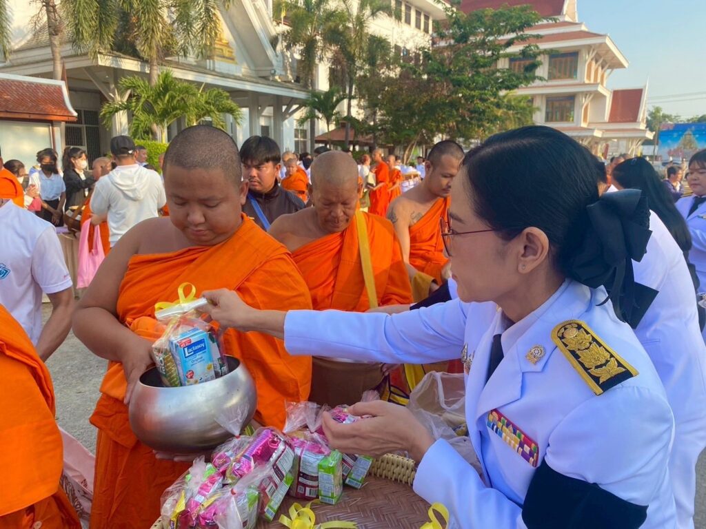 จากนั้น ร่วมตักบาตรข้าวสารอาหารแห้งถวายพระราชกุศลและเฉลิมพระเกียรติสมเด็จพระเจ้าลูกเธอ เจ้าฟ้าพัชรกิติยาภา นเรนทิราเทพยวดี กรมหลวงราชสาริณีสิริพัชร มหาวัชรราชธิดา ที่ทรงมีต่อประชาชนชาวไทย