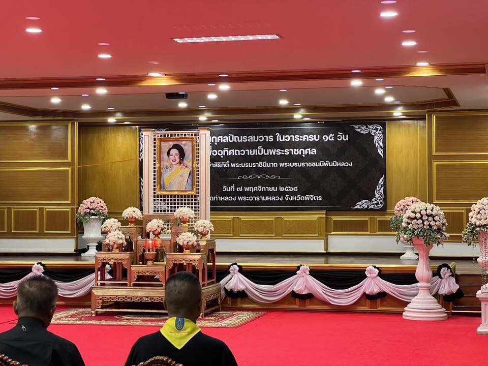 วันที่ 7 พฤศจิกายน 2568 เวลา 18.00 น. ดร.สิงห์เพชร สุทธิ ผู้อำนวยการสำนักงานเขตพื้นที่การศึกษามัธยมศึกษาพิจิตร มอบหมายให้บุคลากรในสังกัด เข้าร่วมพิธีบำเพ็ญกุศล ในพิธีสวดพระอภิธรรมอุทิศถวายพระราชกุศลแด่ สมเด็จพระนางเจ้าสิริกิติ์ พระบรมราชินีนาถ พระราชชนนีพันปีหลวง