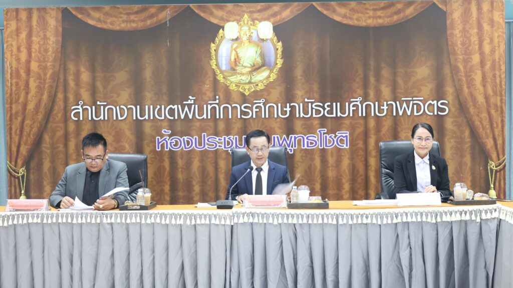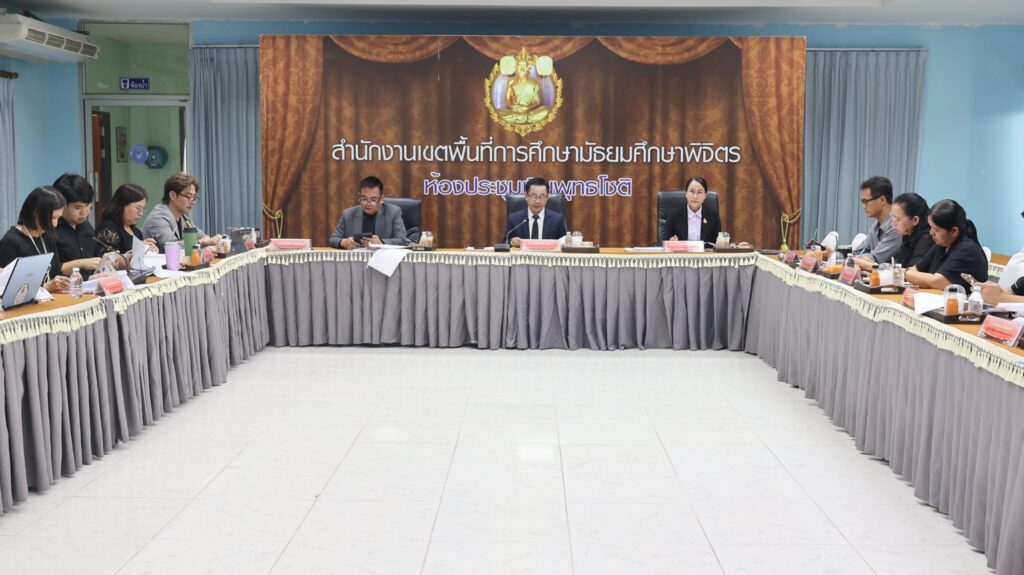วันที่ 8 เมษายน 2569 ดร.สิงห์เพชร สุทธิ ผู้อำนวยการสำนักงานเขตพื้นที่การศึกษามัธยมศึกษาพิจิตร เป็นประธานการประชุมกลั่นกรองการรายงานการติดตามและประเมินผลการบริหารและการจัดการศึกษาขั้นพื้นฐานของสำนักงานคณะกรรมการการศึกษาขั้นพื้นฐาน ประจำปีงบประมาณ พ.ศ. 2569 รอบ 6 เดือน ครั้งที่ 2 เพื่อติดตามการดำเนินงานให้เป็นไปอย่างมีประสิทธิภาพและสอดคล้องกับนโยบายของสำนักงานคณะกรรมการการศึกษาขั้นพื้นฐาน