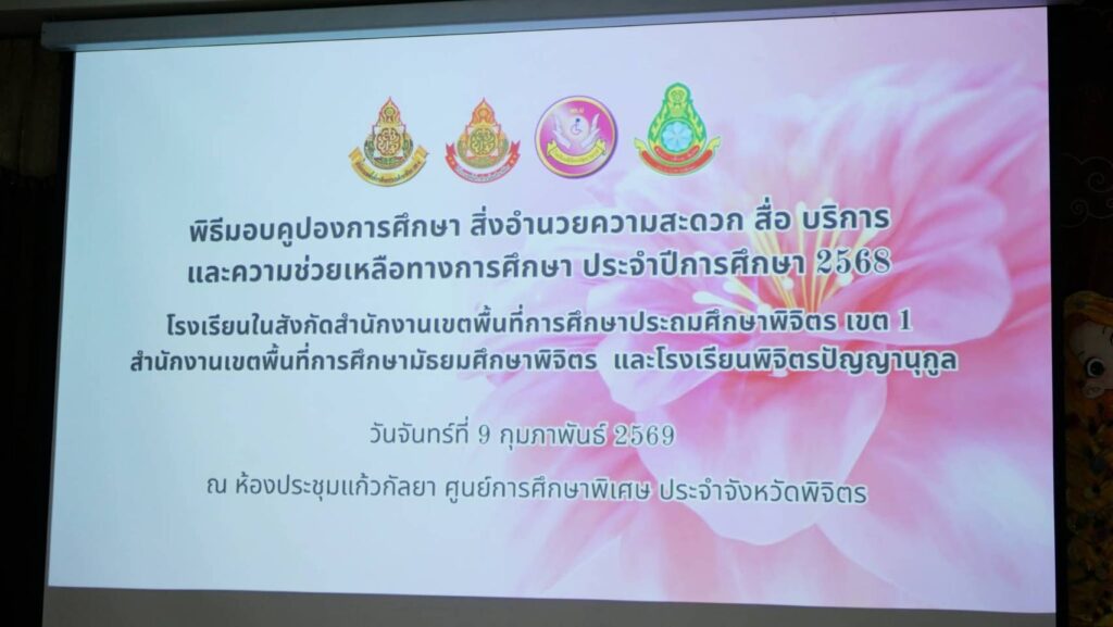 ข่าวสพม.พิจิตร วันที่ 9 กุมภาพันธ์ 2569 – สพม.พิจิตร ร่วมพิธีมอบคูปองการศึกษา สิ่งอำนวยความสะดวก สื่อ บริการ และความช่วยเหลืออื่นใดทางการศึกษา ประจำปีการศึกษา 2568