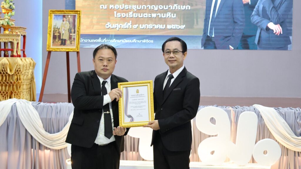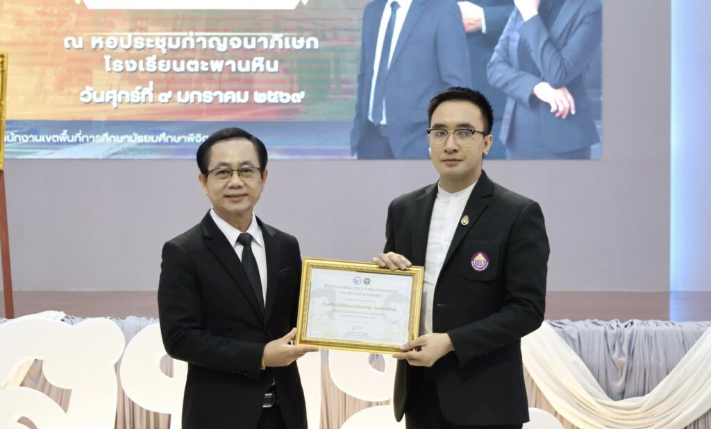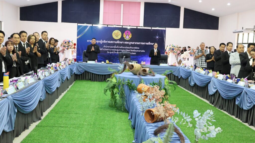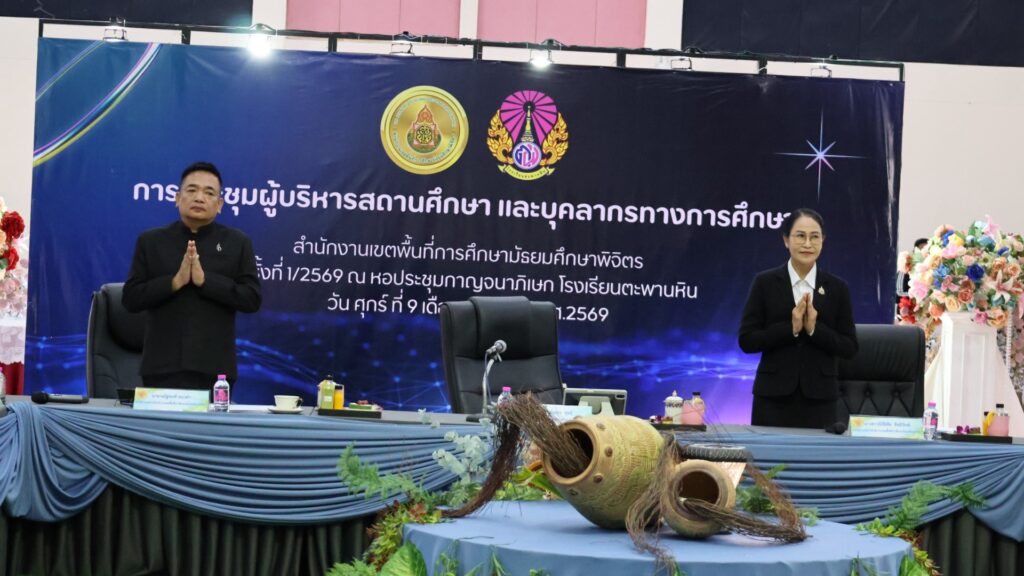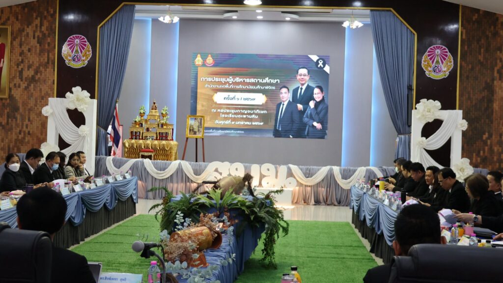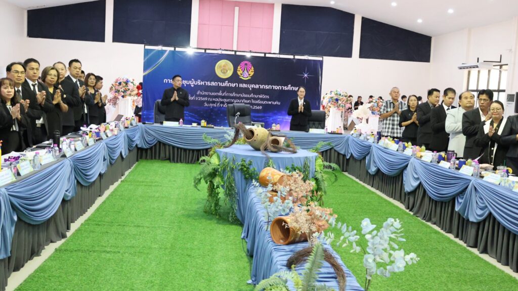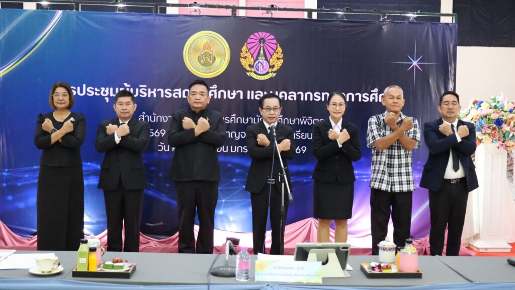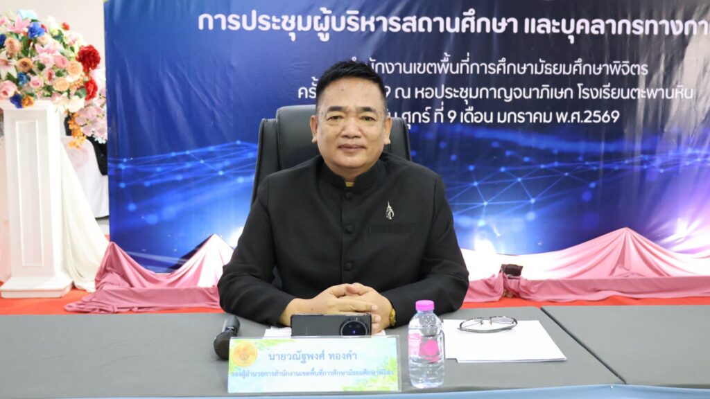วันที่ 9 มกราคม 2569 ดร.สิงห์เพชร สุทธิ ผู้อำนวยการสำนักงานเขตพื้นที่การศึกษามัธยมศึกษาพิจิตร พร้อมด้วย นายวณัฐพงศ์ ทองคำ รองผู้อำนวยการสำนักงานเขตพื้นที่การศึกษามัธยมศึกษาพิจิตร นางสาวนิรัติศัย สิทธิรักษ์ รองผู้อำนวยการสำนักงานเขตพื้นที่การศึกษามัธยมศึกษาพิจิตร ผู้บริหารสถานศึกษาในสังกัด และผู้อำนวยการกลุ่ม ร่วมยืนสงบนิ่งน้อมถวายความอาลัยสมเด็จพระนางเจ้าสิริกิติ์ พระบรมราชินีนาถ พระบรมราชชนนีพันปีหลวง เพื่อแสดงความจงรักภักดี และน้อมรำลึกในพระมหากรุณาธิคุณอันหาที่สุดมิได้ หลังจากนั้นร่วมกล่าวคำปฏิญาณเขตสุจริต พร้อมแสดงสัญลักษณ์ในการประกาศเจตนารมณ์ต่อต้านการทุจริตทุกรูปแบบ และร่วมประชุมผู้บริหารสถานศึกษา ครั้งที่ 1/2569 ของสำนักงานเขตพื้นที่การศึกษามัธยมศึกษาพิจิตร เพื่อชี้แจงนโยบาย หารือข้อราชการต่างๆ และได้เน้นย้ำทำความเข้าใจ การขับเคลื่อนนโยบายของรัฐมนตรีว่าการกระทรวงศึกษาธิการ “เรียนดี มีคุณธรรม”นโยบายและจุดเน้นสพฐ. พร้อมมอบนโยบายการบริหารการจัดการศึกษาสู่การปฏิบัติ พร้อมกันนี้ได้ร่วมแสดงความยินดีกับผู้บริหารสถานศึกษา และมอบเกียรติบัตรเชิดชูเกียรติรางวัลเสมา ป.ป.ส. ประเภทผลงานดีเด่น ระดับเงิน โครงการสถานศึกษาสีขาว ปลอดยาเสพติดและอบายมุข ระดับเขตพื้นที่การศึกษา ปีการศึกษา 2567 และโรงเรียนแกนนำ อย.น้อย ระดับประะเทศ ให้แก่ผู้บริหารสถานศึกษา ที่มีผลงานเด่นประสบความสำเร็จ เป็นที่ประจักษ์ หลังจากนั้น สำนักคลังจังหวัดพิจิตร ได้มาให้ความรู้ ความเข้าใจแนวทางปฏิบัติของขั้นตอนการจัดหาพัสดุ ตาม พรบ.การจัดซื้อจัดจ้างและการบริหารพัสดุภาครัฐ พ.ศ.2560 ให้กับผู้บริหารสถานศึกษา ณ โรงเรียนตะพานหิน อำเภอตะพานหิน จังหวัดพิจิตร