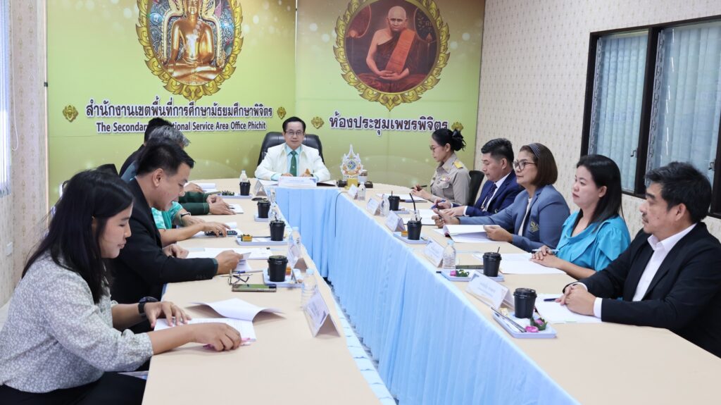 วันที่ 22 ตุลาคม 2568 ดร.สิงห์เพชร สุทธิ ผู้อำนวยการสำนักงานเขตพื้นที่การศึกษามัธยมศึกษาพิจิตร ประธานการประชุมคณะกรรมการการรับนักเรียนระดับเขตพื้นที่การศึกษา ของสำนักงานเขตพื้นที่การศึกษามัธยมศึกษาพิจิตร ปีการศึกษา 2569 ครั้งที่ 1/2569 2569 โดยมี นางสาวนิรัติศัย สิทธิรักษ์ รองผู้อำนวยการสำนักงานเขตพื้นที่การศึกษามัธยมศึกษาพิจิตร พร้อมด้วยคณะกรรมการการรับนักเรียน เข้าร่วมประชุมเพื่อร่วมกันวางแนวทางการดำเนินงานรับนักเรียนให้เป็นไปด้วยความเรียบร้อย โปร่งใส และเป็นธรรม ตลอดจนสอดคล้องกับนโยบายของสำนักงานคณะกรรมการการศึกษาขั้นพื้นฐาน ณ ห้องประชุมเพชรพิจิตร สำนักงานเขตพื้นที่การศึกษามัธยมศึกษาพิจิตร อำเภอเมือง จังหวัดพิจิตร