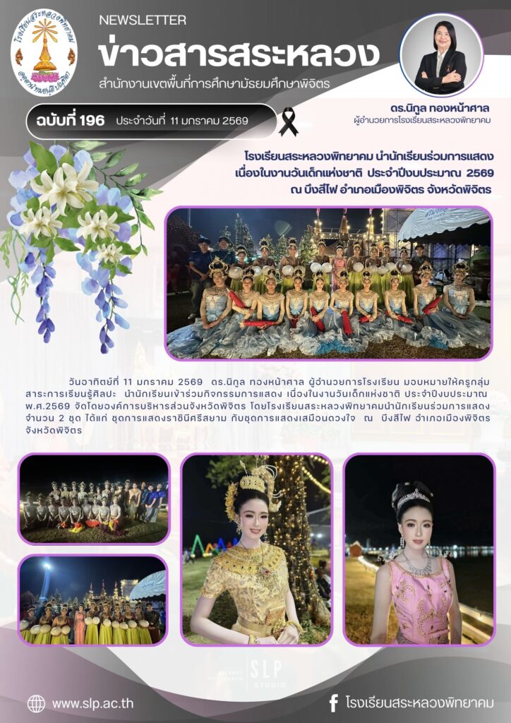ข่าวสารสระหลวงฯ 12 มกราคม 2569 “โรงเรียนสระหลวงพิทยาคมนำนักเรียนร่วมการแสดง เนื่องในงานวันเด็กแห่งชาติ ปี 2569”By ประชาสัมพันธ์ โรงเรียนสระหลวงพิทยาคม / 13/01/2026