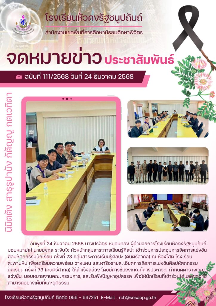 ครูมงคล ระงับใจ เข้าร่วมการประชุมการจัดการแข่งขันศิลปหัตถกรรมฯ (ดนตรีสากล)By งานประชาสัมพันธ์ โรงเรียนหัวดงรัฐชนูปถัมภ์ / 24/12/2025