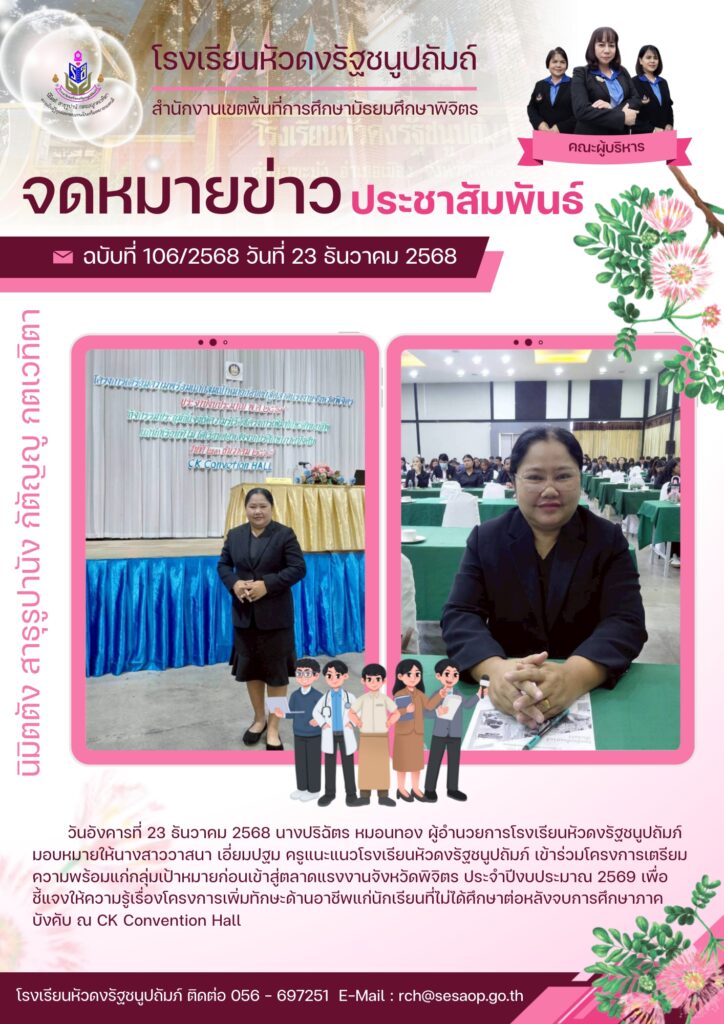 ครูวาสนา เอี่ยมปฐม เข้าร่วมโครงการเตรียมความพร้อมแก่กลุ่มเป้าหมายก่อนเข้าสู่ตลาดแรงงาน