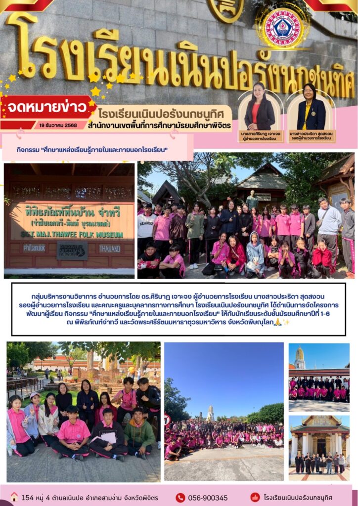จดหมายข่าวประชาสัมพันธ์โรงเรียนเนินปอรังนกชนูทิศ ดำเนินกิจกรรม “ศึกษาแหล่งเรียนรู้ภายในและภายนอกโรงเรียน” ให้กับนักเรียนระดับชั้นมัธยมศึกษาปีที่ 1-6 เพื่อสร้างเจตคติที่ดีต่อการเรียนรู้ต่างๆ เพื่อสร้างเสริมประสบการณ์ตรง เพิ่มเติมความรู้จากในห้องเรียนBy ประชาสัมพันธ์ โรงเรียนเนินปอรังนกชนูทิศ / 25/12/2025