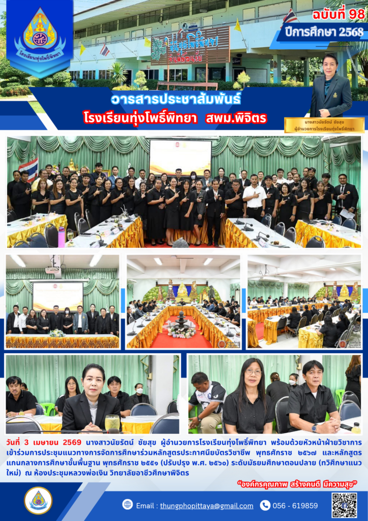 จดหมายข่าวโรงเรียนทุ่งโพธิ์พิทยา วันที่ 3 เมษายน 2569