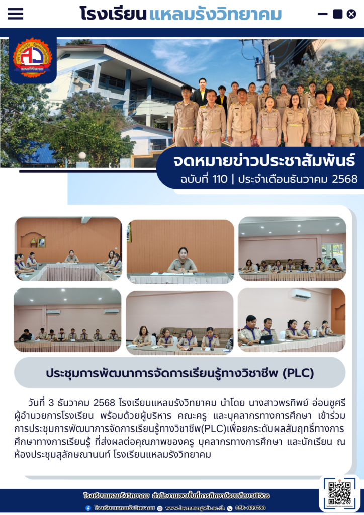 จดหมายข่าวโรงเรียนแหลมรังวิทยาคม ประจำเดือนธันวาคม ฉบับที่ 110/2568 วันที่ 3 ธันวาคม 2568By pr1066350400 / 03/12/2025