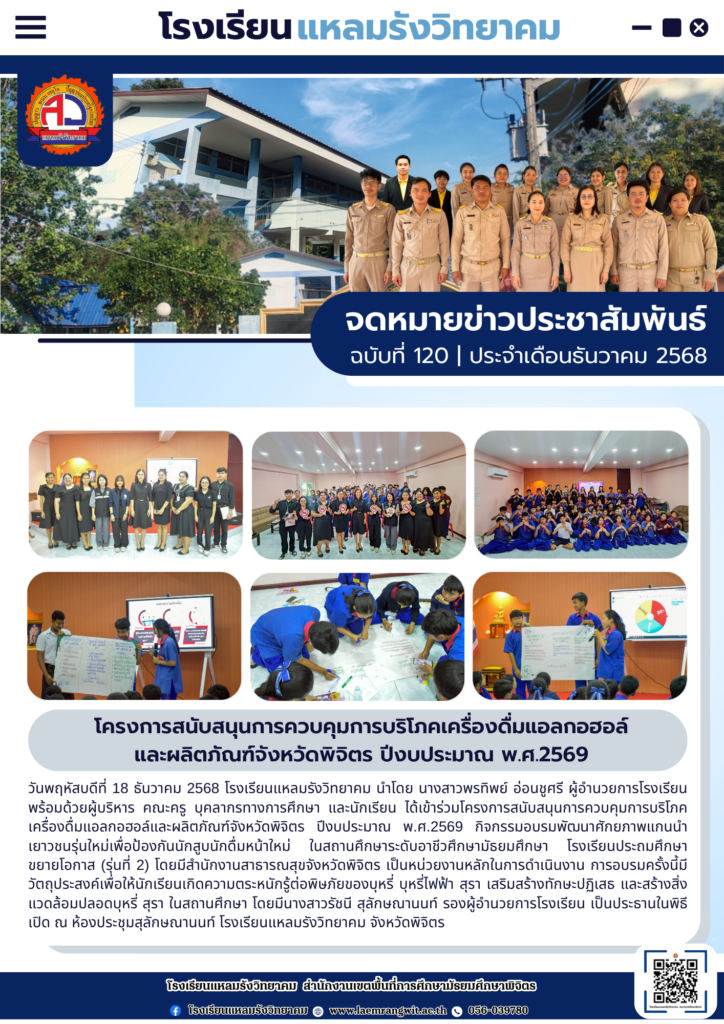 จดหมายข่าวโรงเรียนแหลมรังวิทยาคม ประจำเดือนธันวาคม ฉบับที่ 120/2568 วันที่ 18 ธันวาคม 2568By pr1066350400 / 18/12/2025