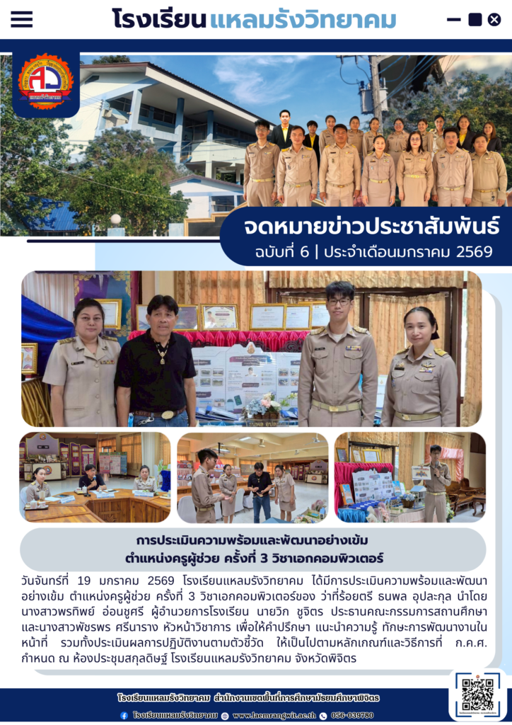 จดหมายข่าวโรงเรียนแหลมรังวิทยาคม ประจำเดือนมกราคม ฉบับที่ 6/2569 วันที่ 19 มกราคม 2569
