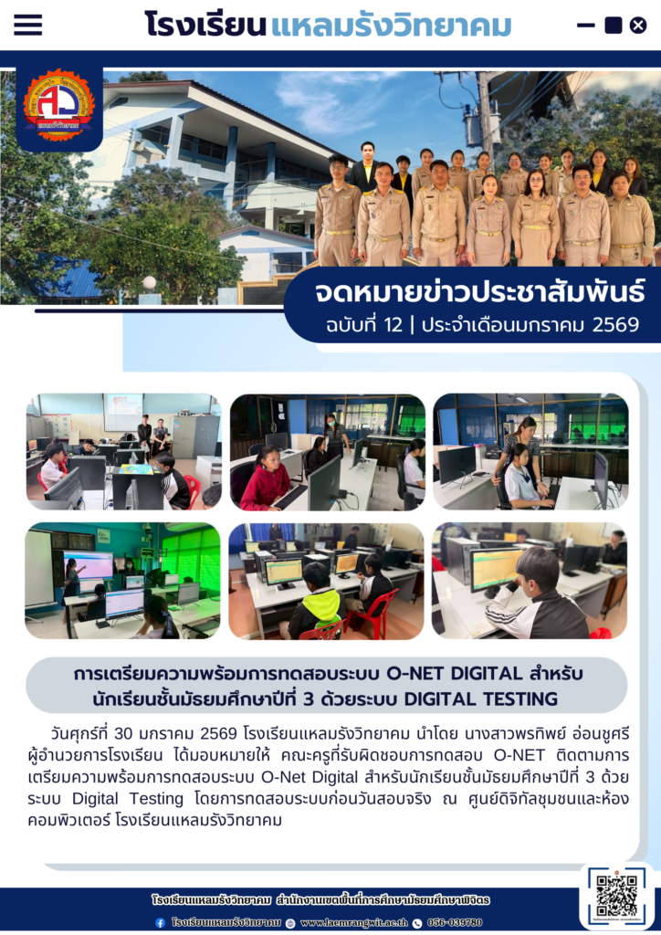 จดหมายข่าวโรงเรียนแหลมรังวิทยาคม ประจำเดือนมกราคม ฉบับที่ 12/2569 วันที่ 31 มกราคม 2569By pr1066350400 / 31/01/2026