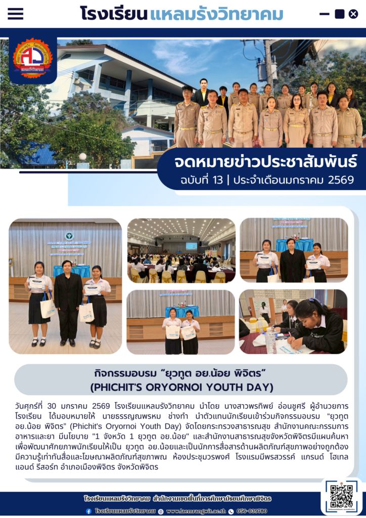 จดหมายข่าวโรงเรียนแหลมรังวิทยาคม ประจำเดือนมกราคม ฉบับที่ 13/2569 วันที่ 31 มกราคม 2569By pr1066350400 / 31/01/2026