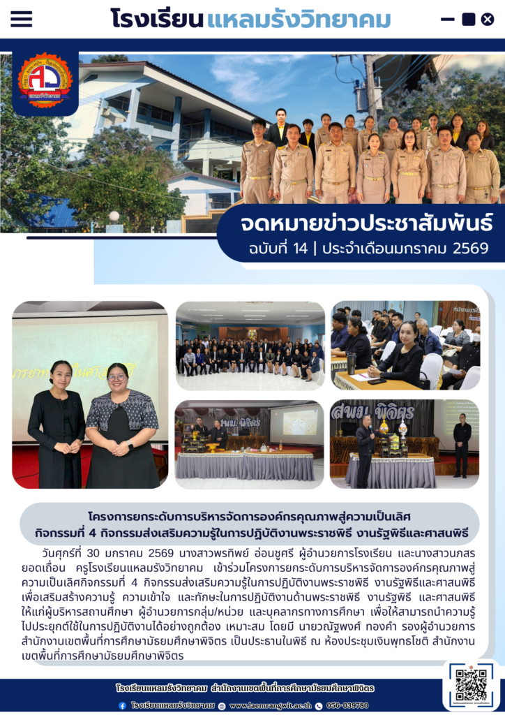 จดหมายข่าวโรงเรียนแหลมรังวิทยาคม ประจำเดือนมกราคม ฉบับที่ 14/2569 วันที่ 31 มกราคม 2569By pr1066350400 / 31/01/2026