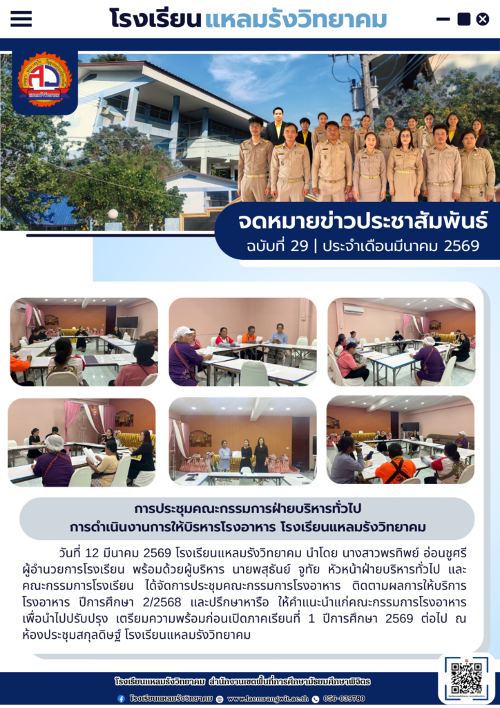 จดหมายข่าวโรงเรียนแหลมรังวิทยาคม ประจำเดือนมีนาคม ฉบับที่ 29/2569 วันที่ 13 มีนาคม 2569By pr1066350400 / 13/03/2026