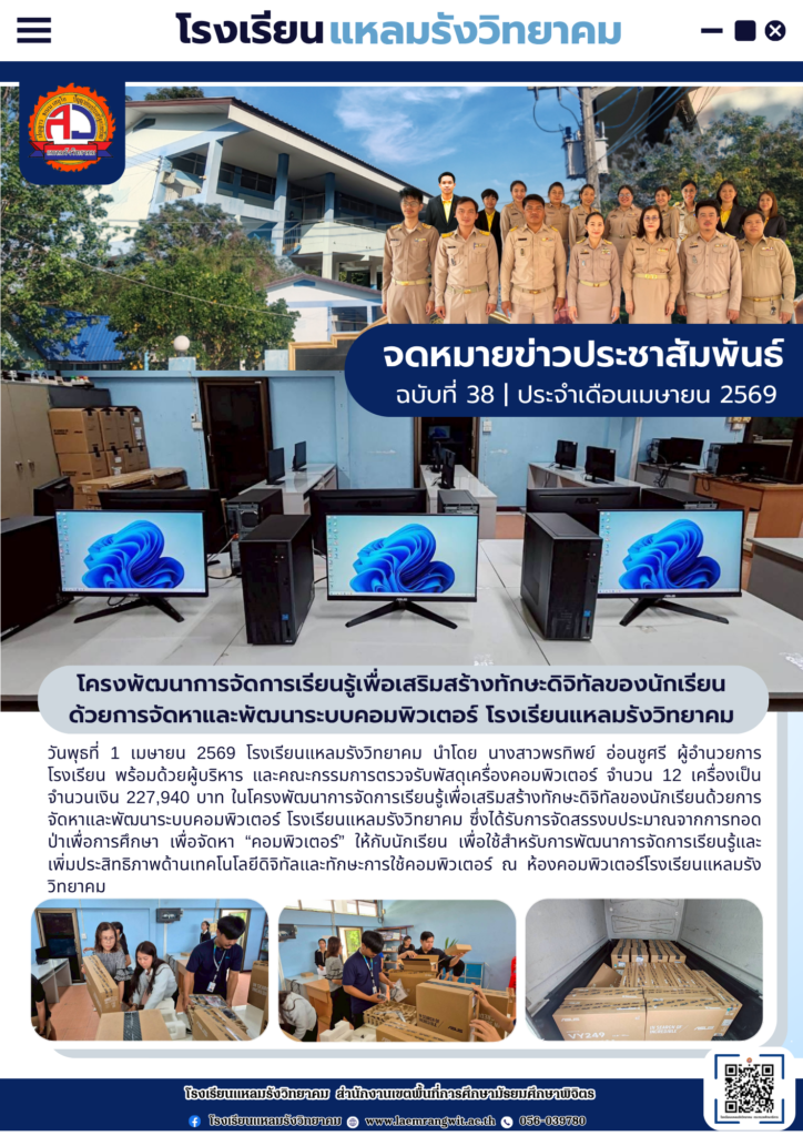 จดหมายข่าวโรงเรียนแหลมรังวิทยาคม ประจำเดือนเมษายน ฉบับที่ 38/2569 วันที่ 2 เมษายน 2569By pr1066350400 / 03/04/2026