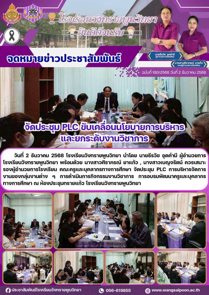 จัดประชุม PLC ขับเคลื่อนนโยบายการบริหารและยกระดับงานวิชาการ