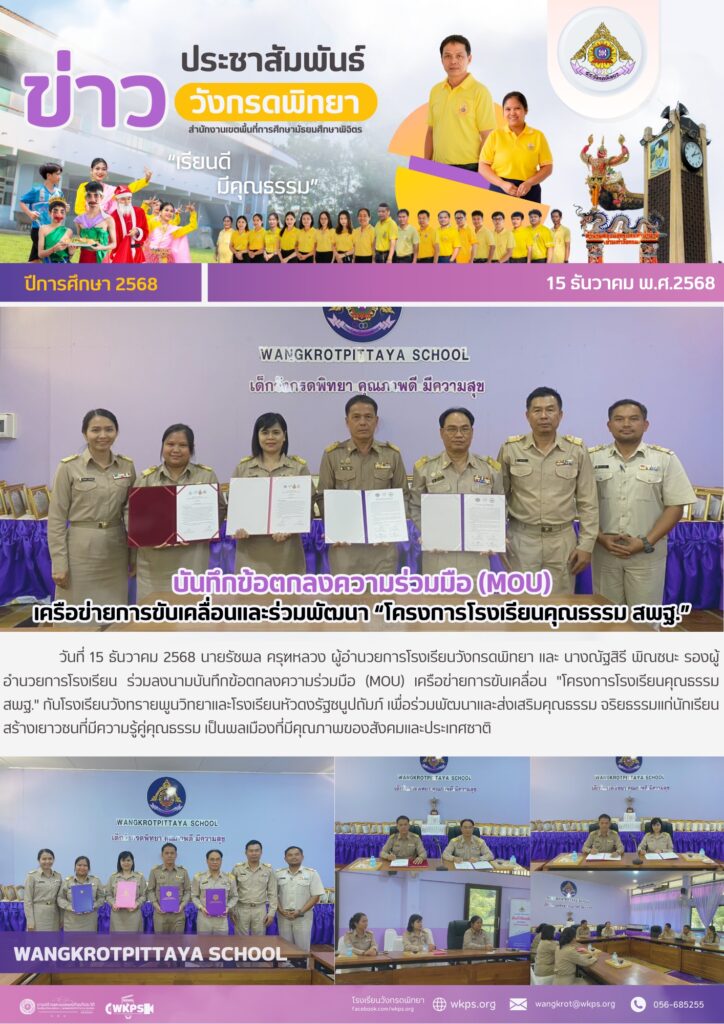 บันทึกข้อตกลงความร่วมมือ (MOU) โครงการโรงเรียนคุณธรรม สพฐ.By ประชาสัมพันธ์ โรงเรียนวังกรดพิทยา / 21/12/2025